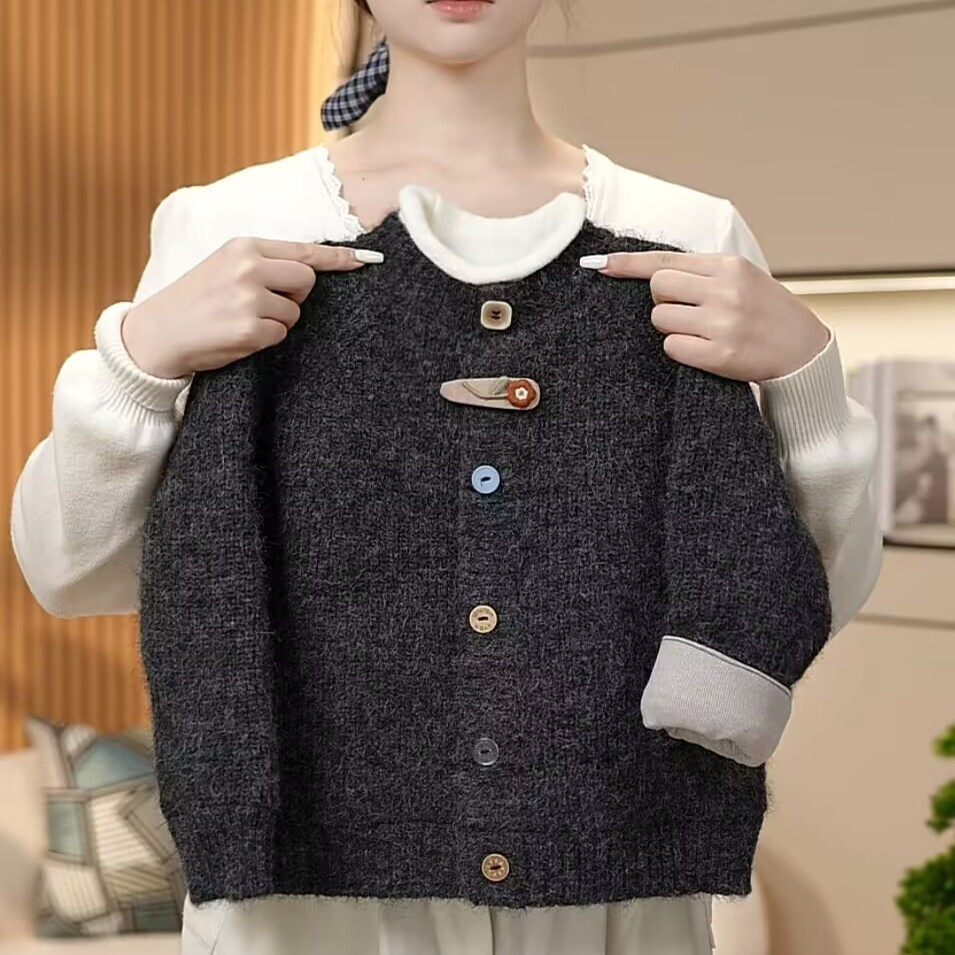 女童针织套头毛衣2025秋冬慵懒风韩版宽松上衣假两件百搭亲子装