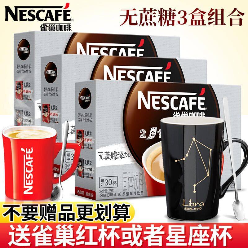 Nestle雀巢咖啡无蔗糖二合一咖啡速溶咖啡粉30条装盒装