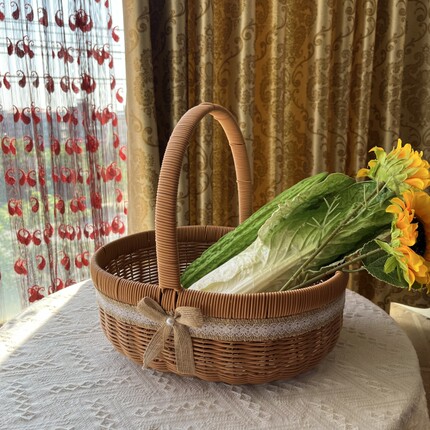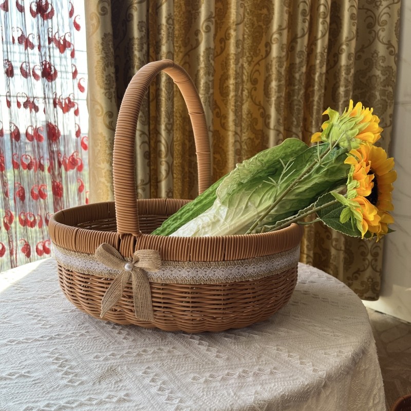 TL09复古椭圆仿藤编野餐手提篮 时尚简约鸡蛋篮小吃篮大号菜篮子