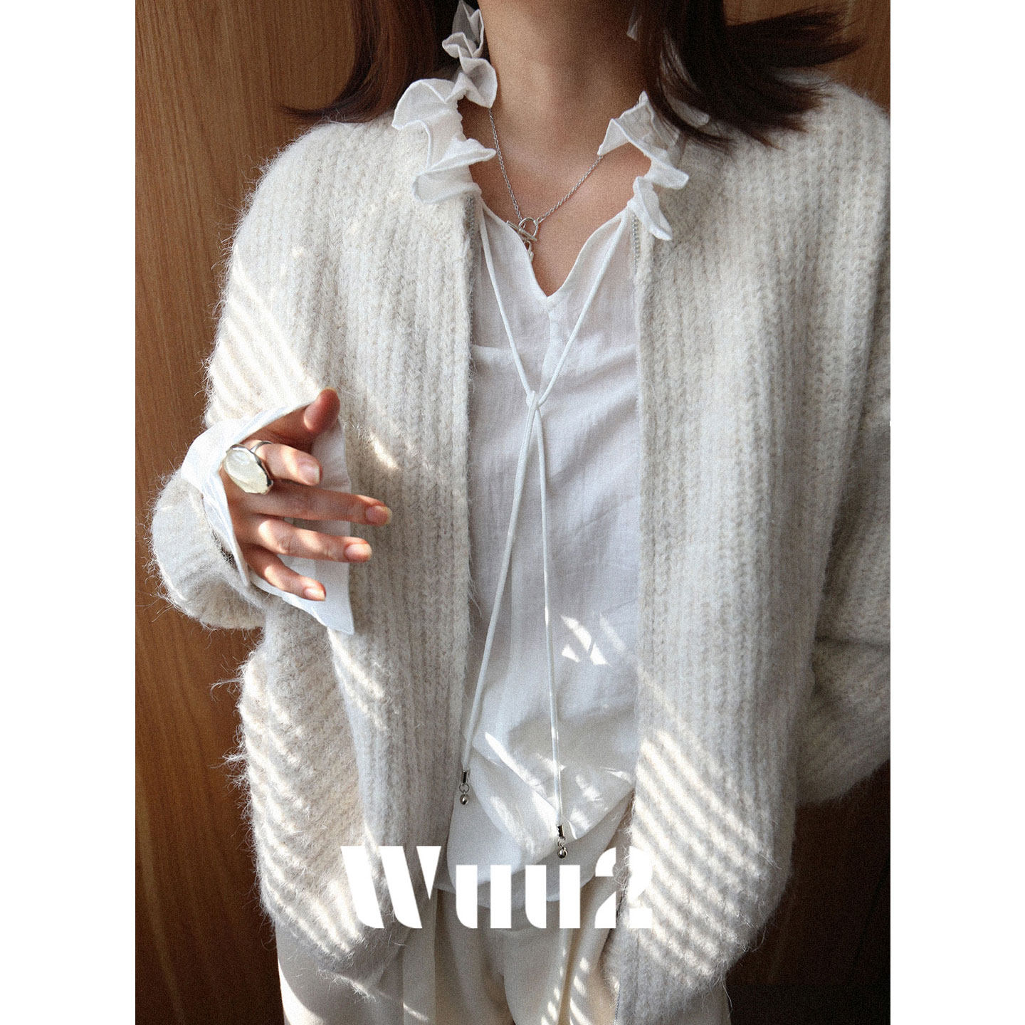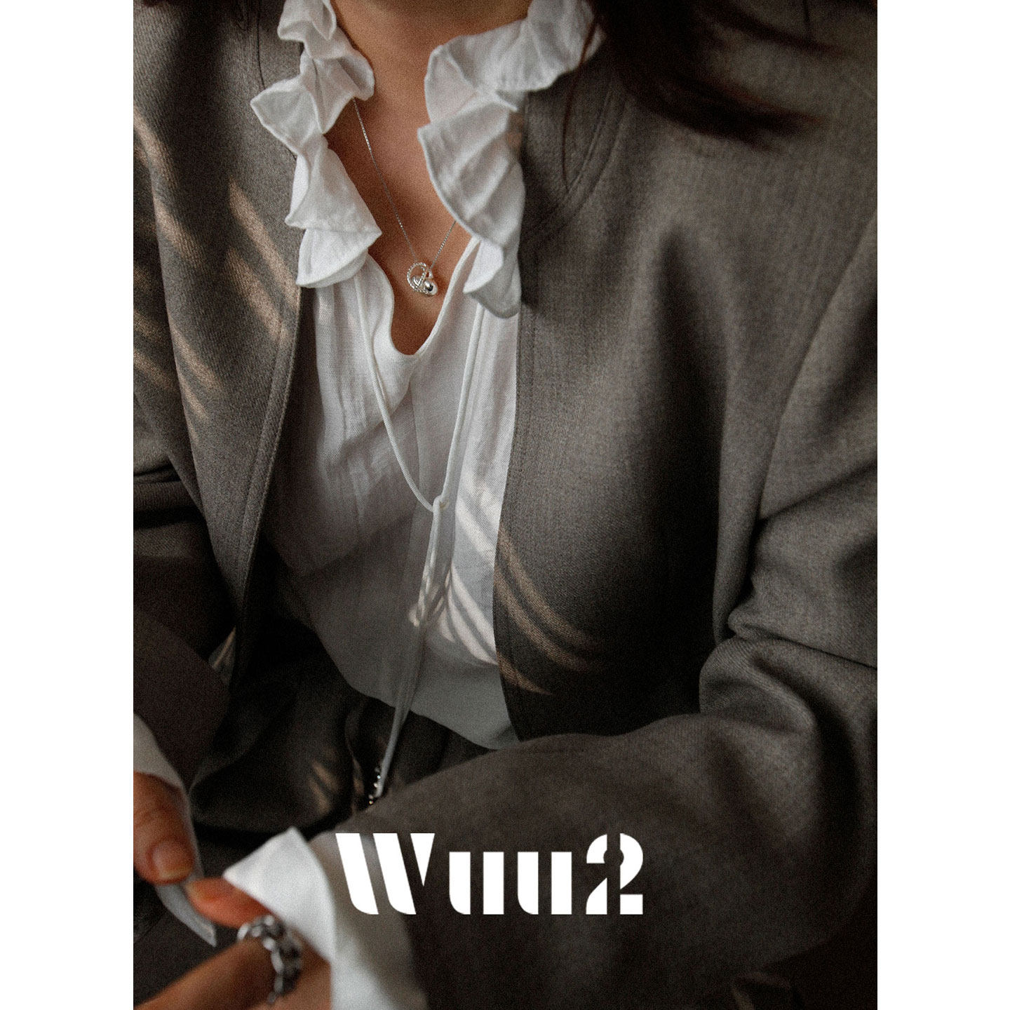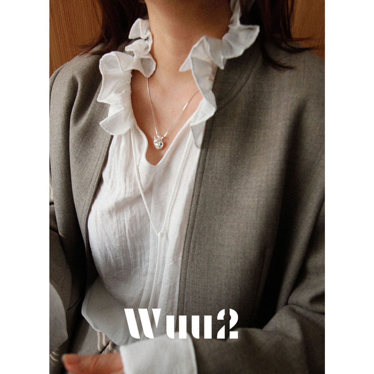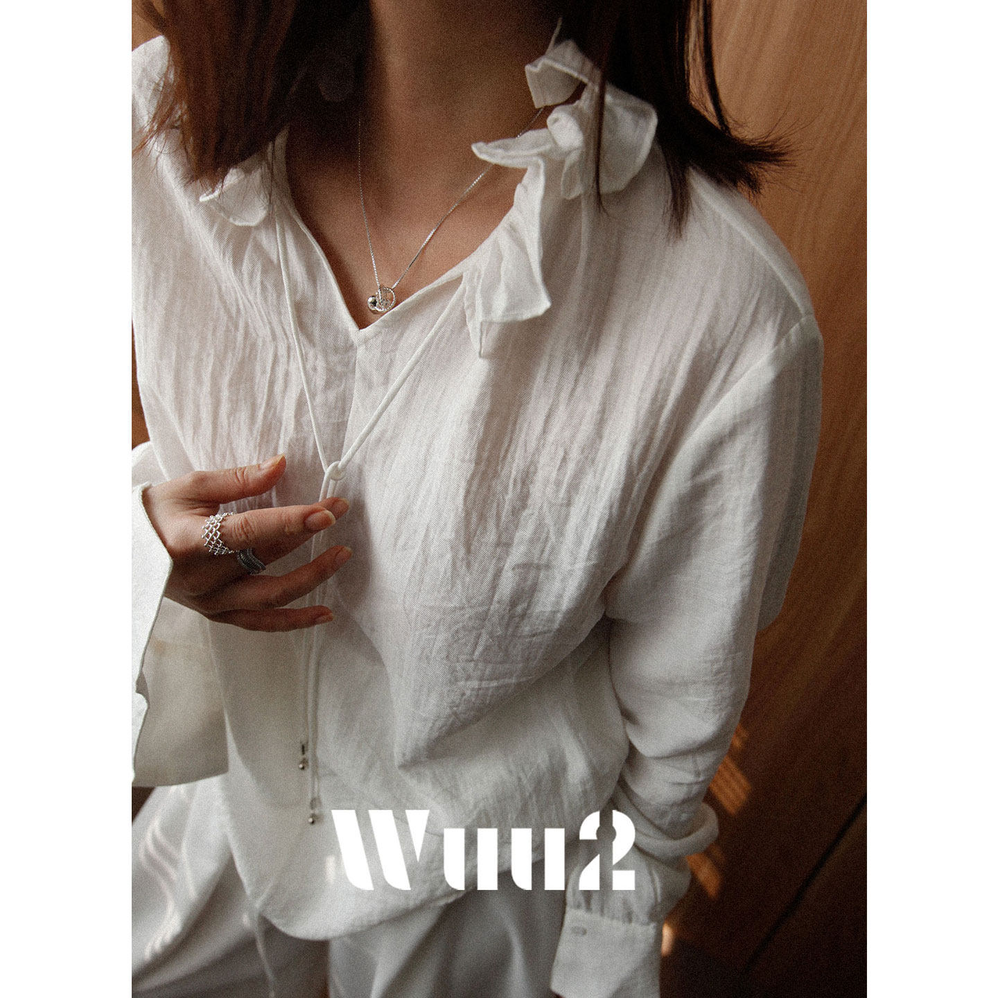 Wuu2 玛柔拉 莱赛尔真丝复古抽皱木耳边系带叠穿衬衫绝美白色上衣