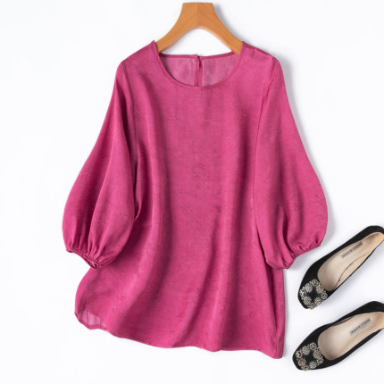 草染流浪风!20姆米真丝花罗提花缎灯笼袖宽松衬衫女夏桑蚕丝