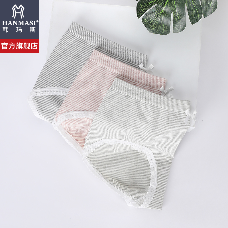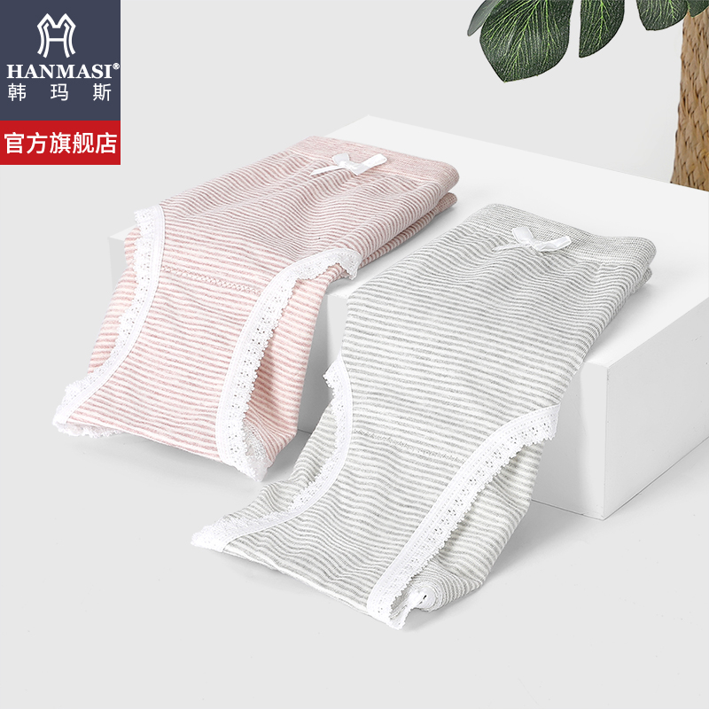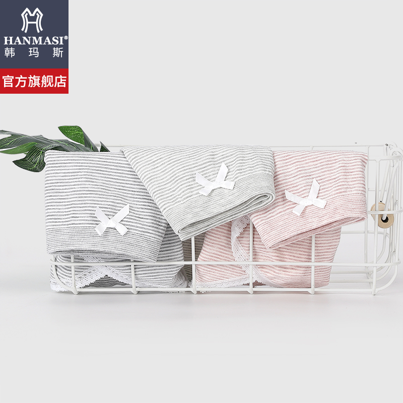 韩玛斯内裤女莫代尔条纹蝴蝶结蕾丝边少女夏季薄款三角短裤12127