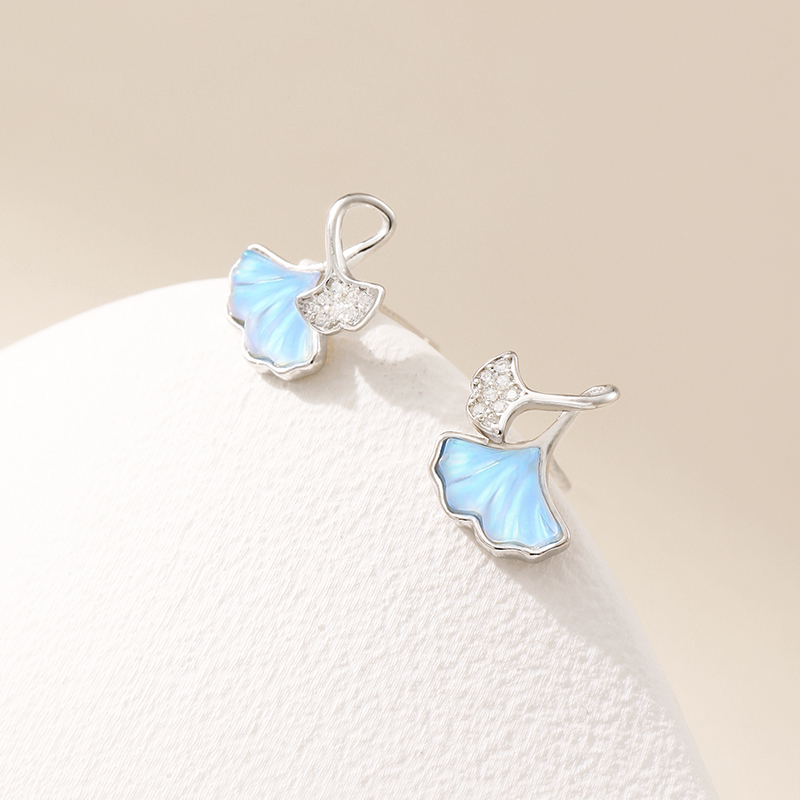 猫蛰999足银女生月光银杏叶耳钉
