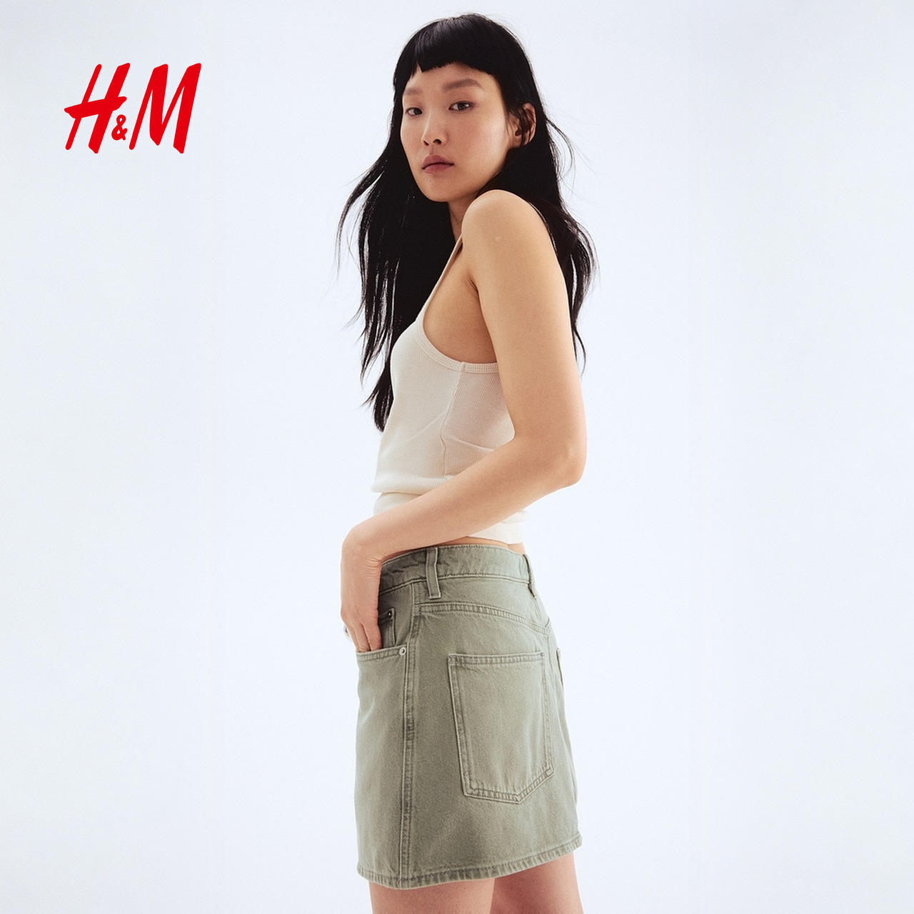 HM2025年夏季新款女装时尚休闲围裹式牛仔半身裙1301354