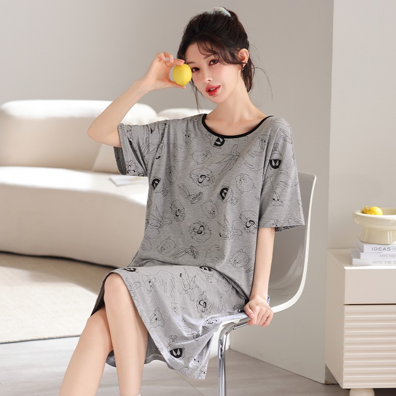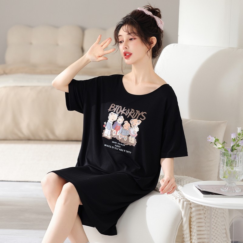 睡裙女士莫代尔棉夏季夏款性感女士短袖孕妇大码少女睡衣女夏天
