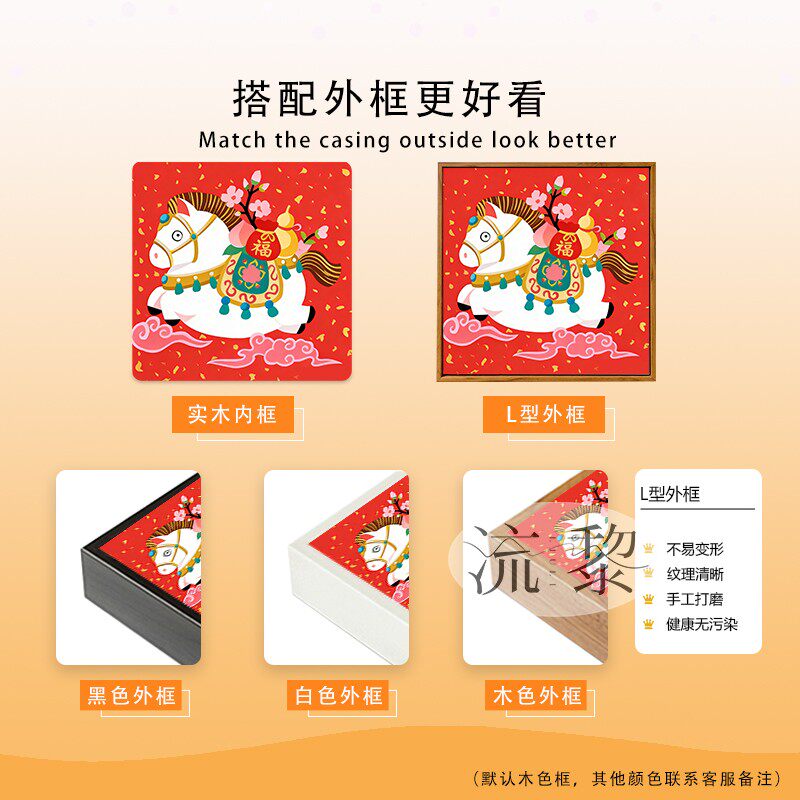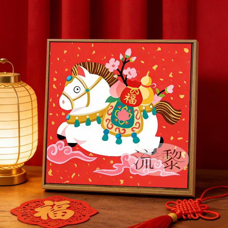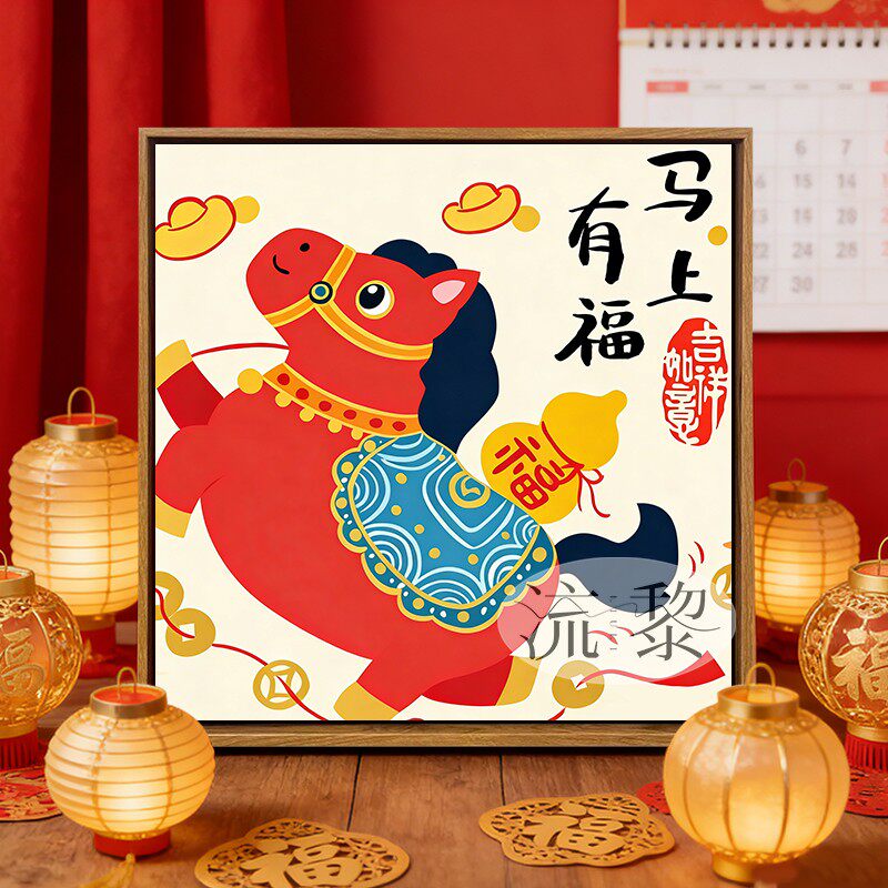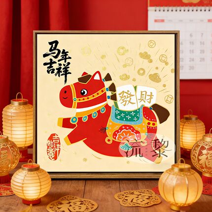 治愈卡通马年有福DIY数字油画手工绘填充涂色新年儿童中国风装饰
