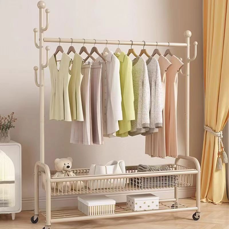 【带换衣蓝】晾衣架落地家用可移动卧室阳台挂衣服架子室内衣帽架