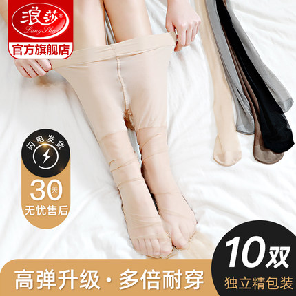 10双独立精包装浪莎丝袜女薄款春秋连裤袜黑肉色隐形防脱散菠萝袜