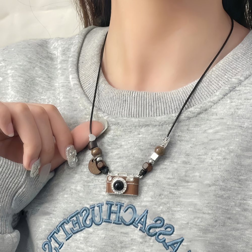 嘻哈辣妹相机月牙项链女男女同款小众设计感锁骨链复古风个性配饰