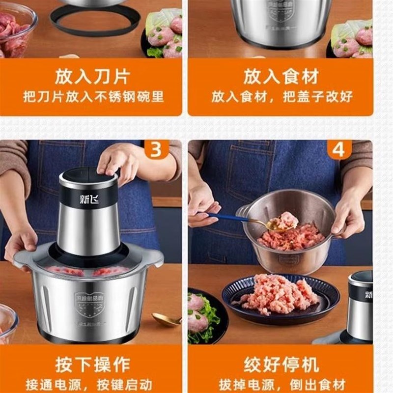 新飞家用绞肉机全自动大容量辅食机多功能电动碎肉碎菜小型料理机