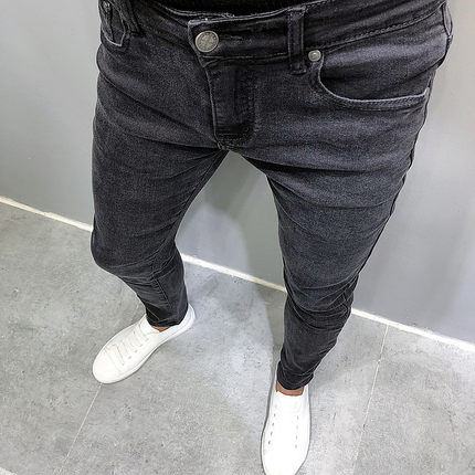 潮男秋新韩版修身深黑灰小脚牛仔裤社会人青年学生chic百搭显瘦