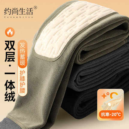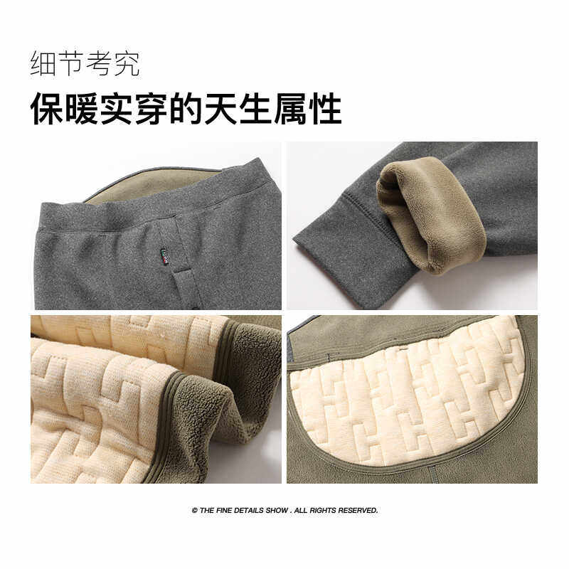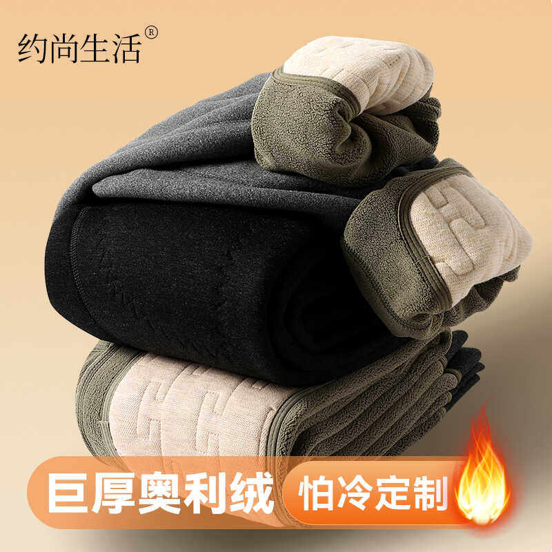 男士保暖裤冬季新款德绒高腰加绒加厚绒裤护膝护腰打底棉裤男款