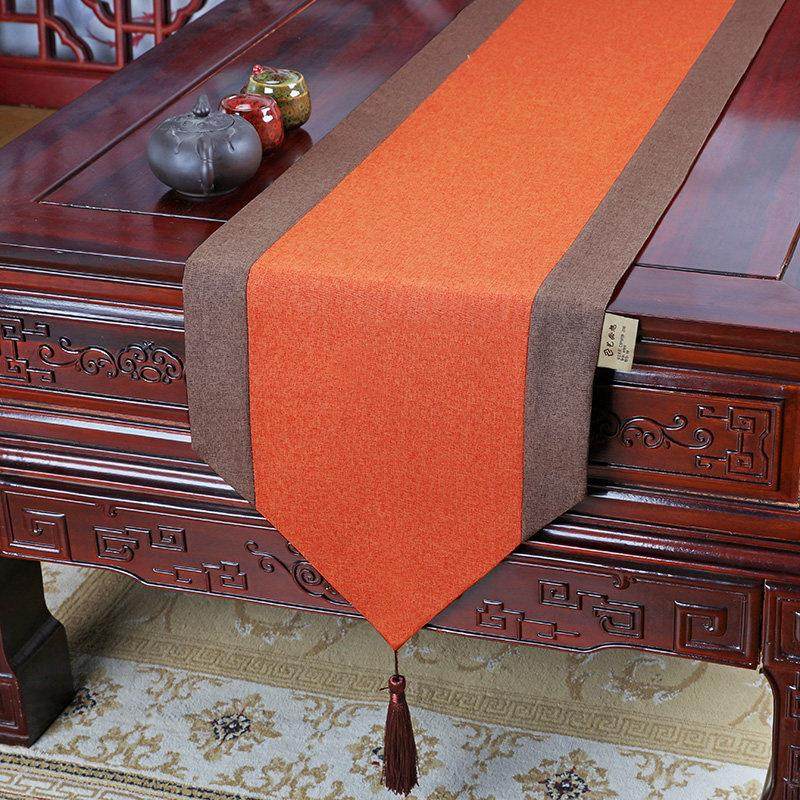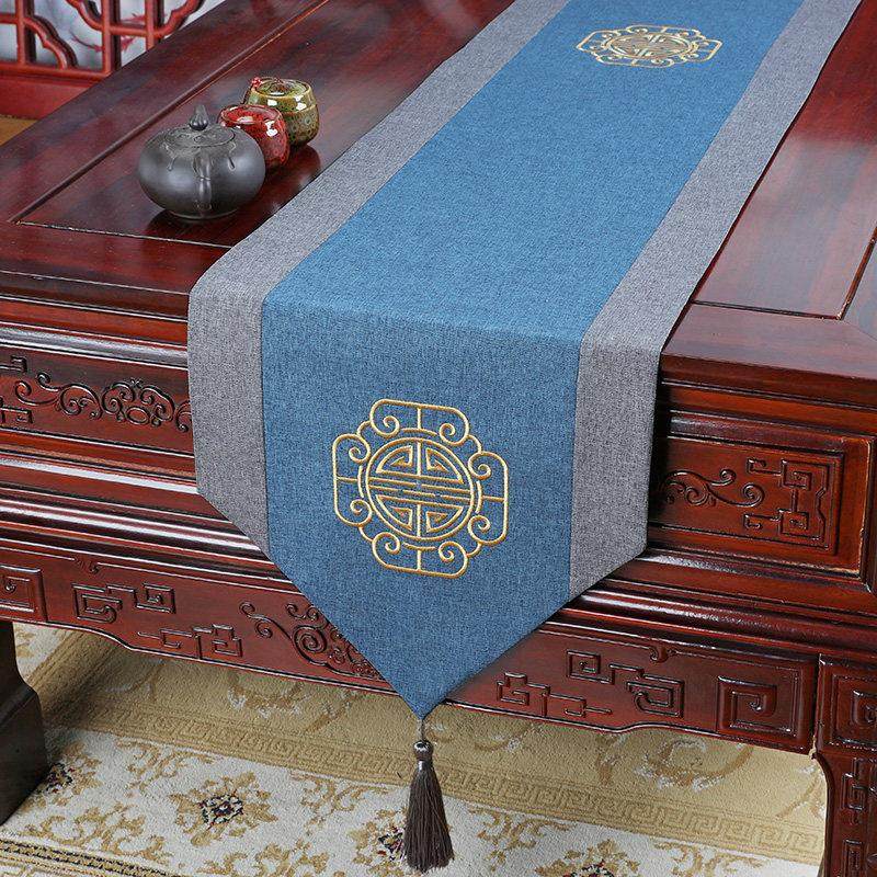 新中式防水桌旗禅意茶席轻奢高端茶几旗布长条电视柜盖布茶桌垫布