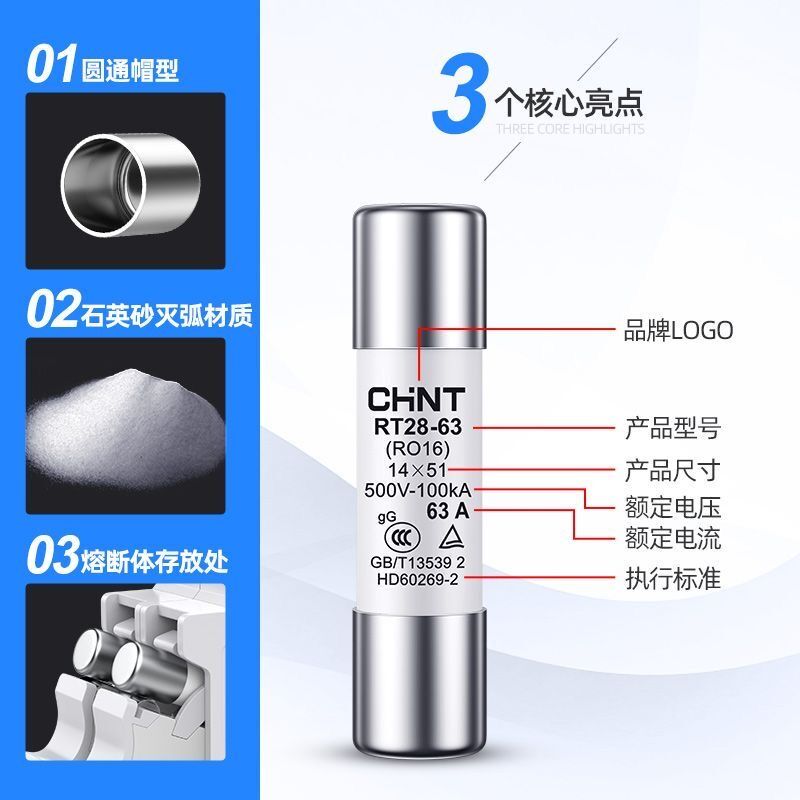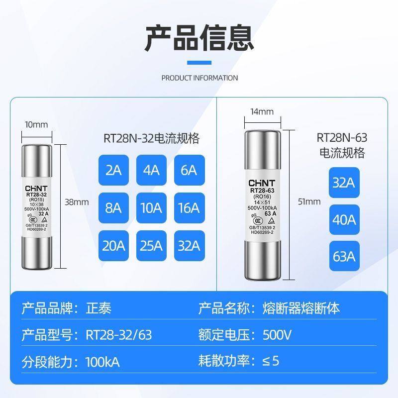 正泰CHNT熔断器芯RT28-32式保险丝插入芯子陶瓷保险管16A63A125A