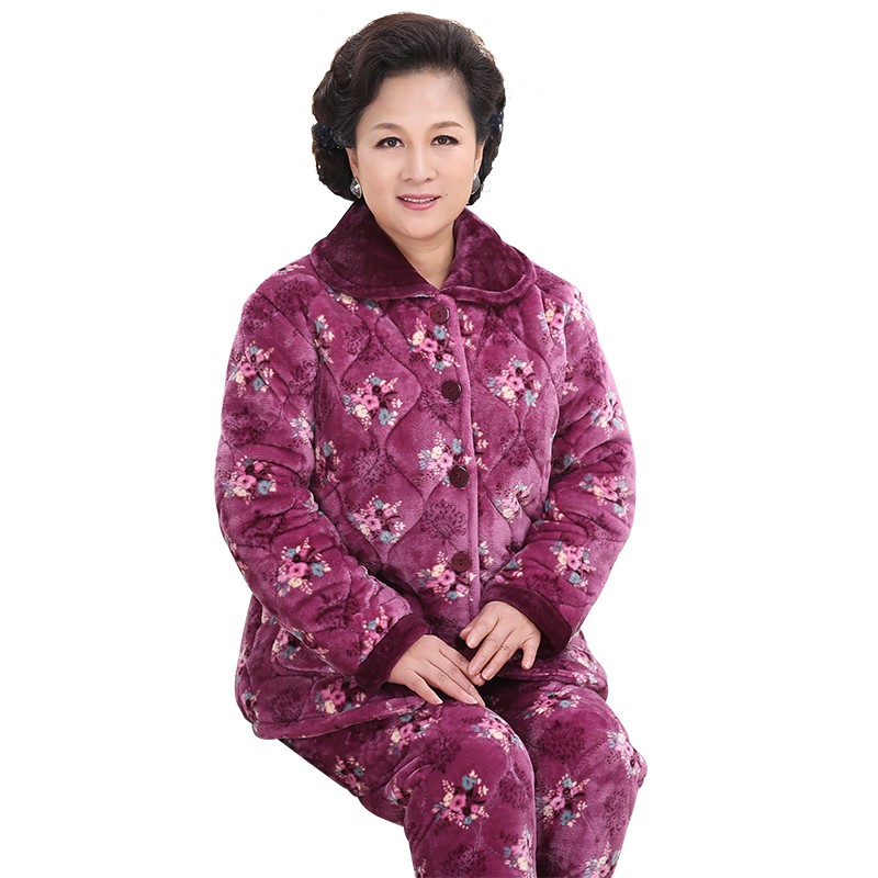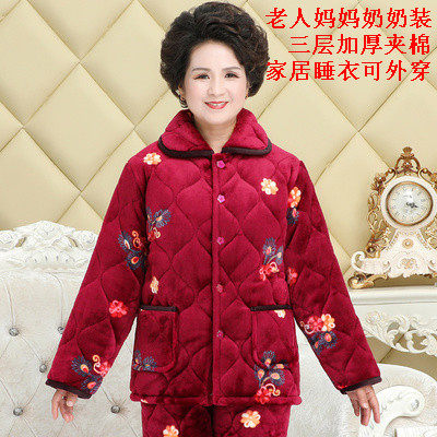 婆婆冬天珊瑚绒夹棉加厚款家居服