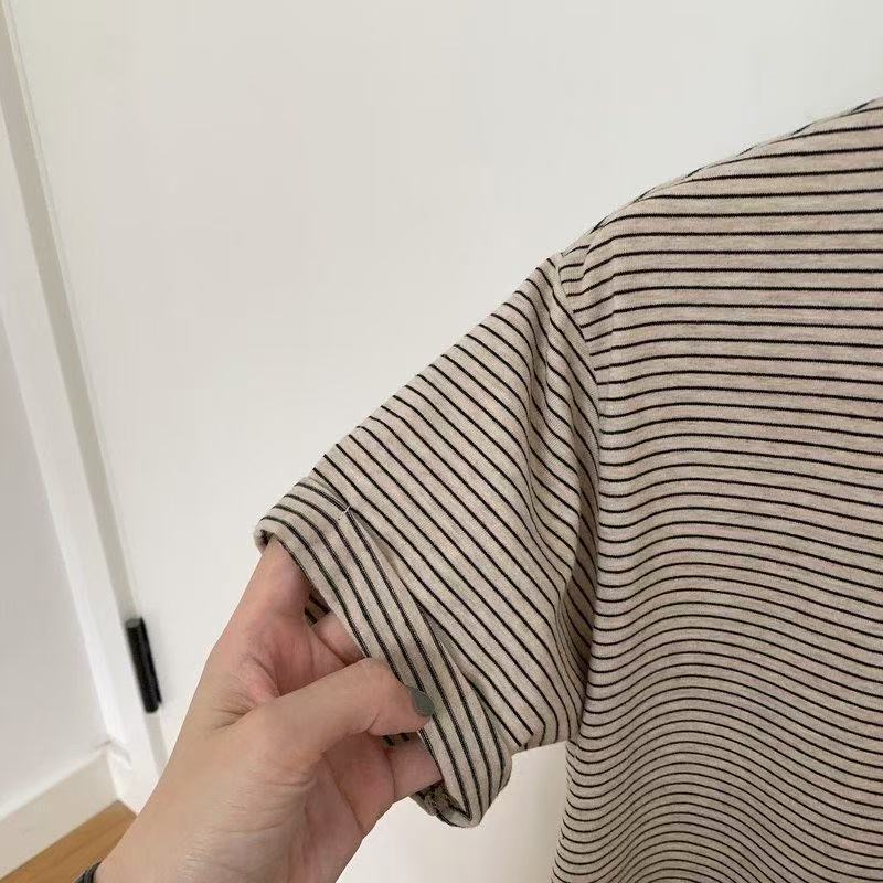 条纹短袖T恤女印花2025年夏季新款百搭美式潮流显瘦ins休闲风上衣