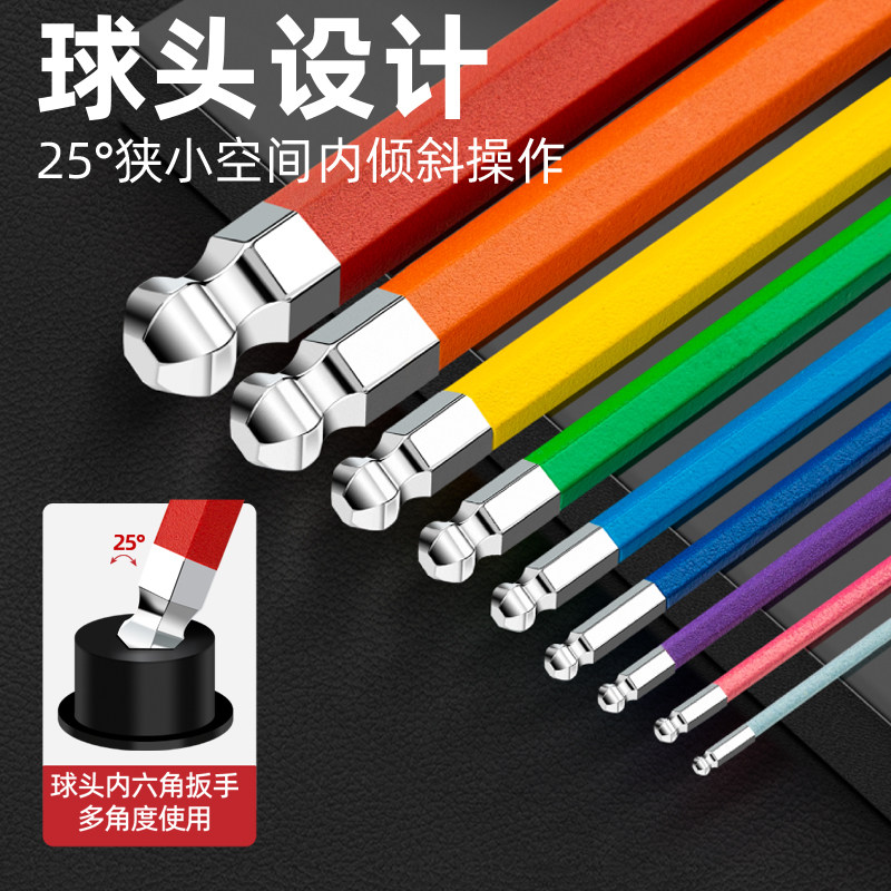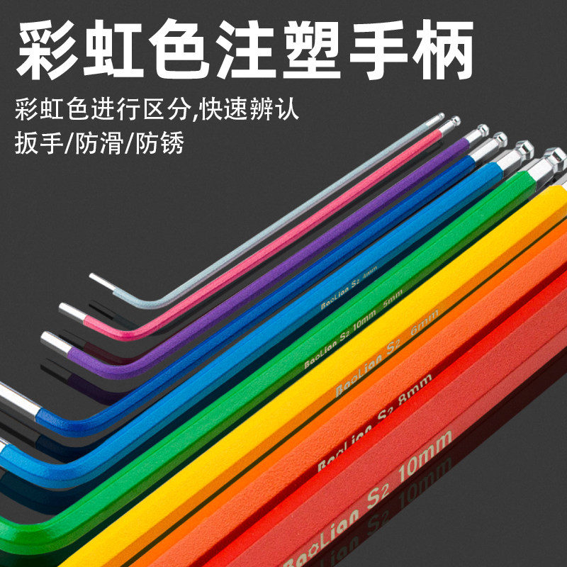 内六角扳手组合套装内六方螺丝刀6角工具彩色六角加长六棱多功能