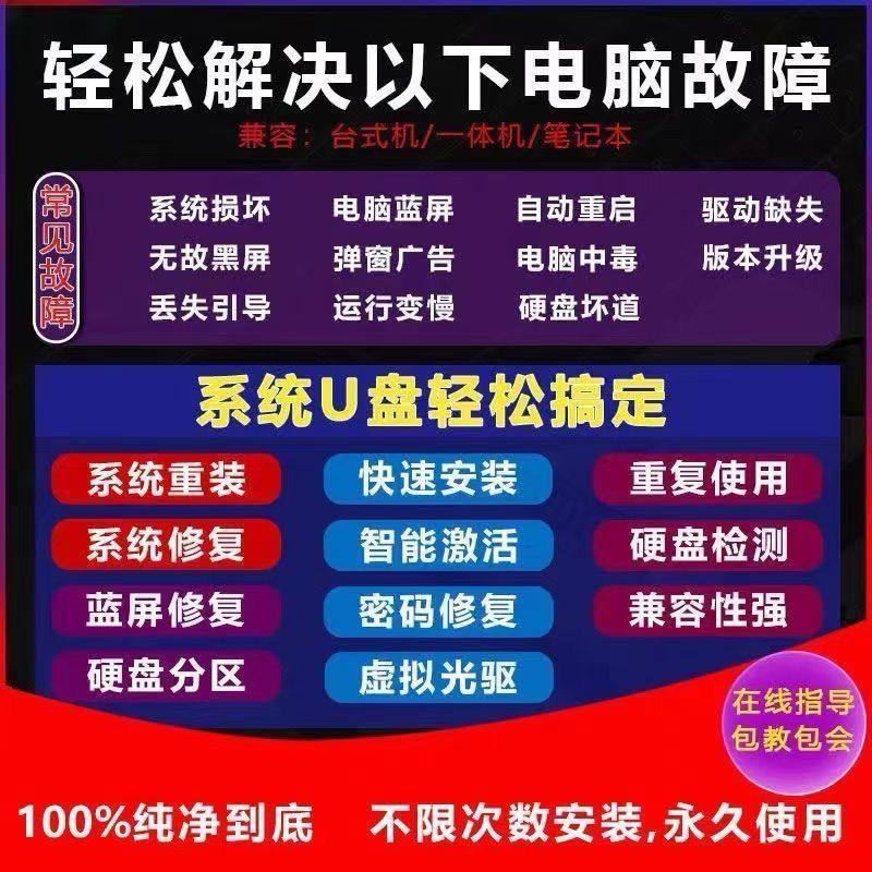 电脑重装系统U盘一键安装Win11/10/7专业纯净正版电脑PE启动优盘