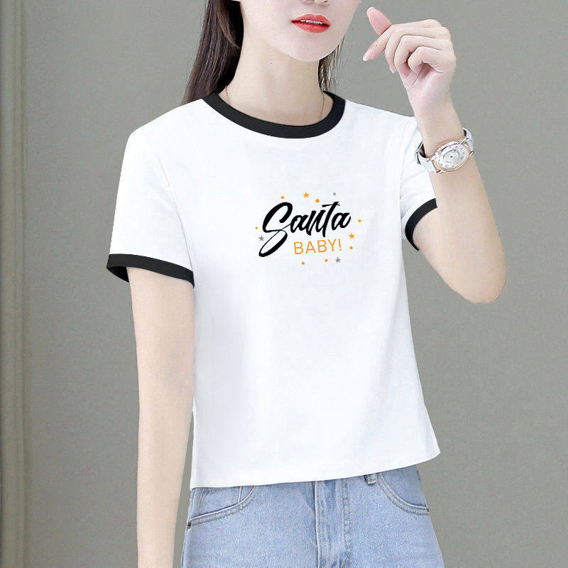 正肩拼接纯棉短袖t恤女夏季2024新款宽松洋气减龄短款上衣服体恤