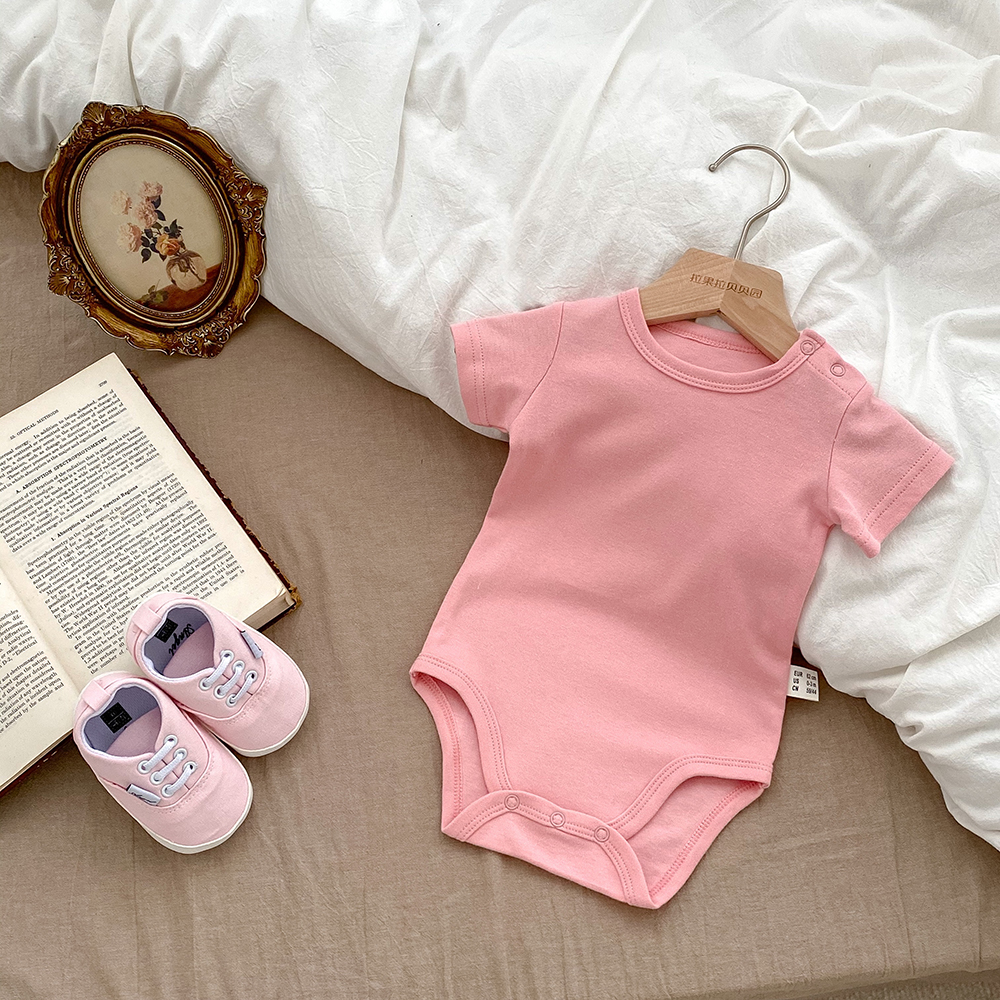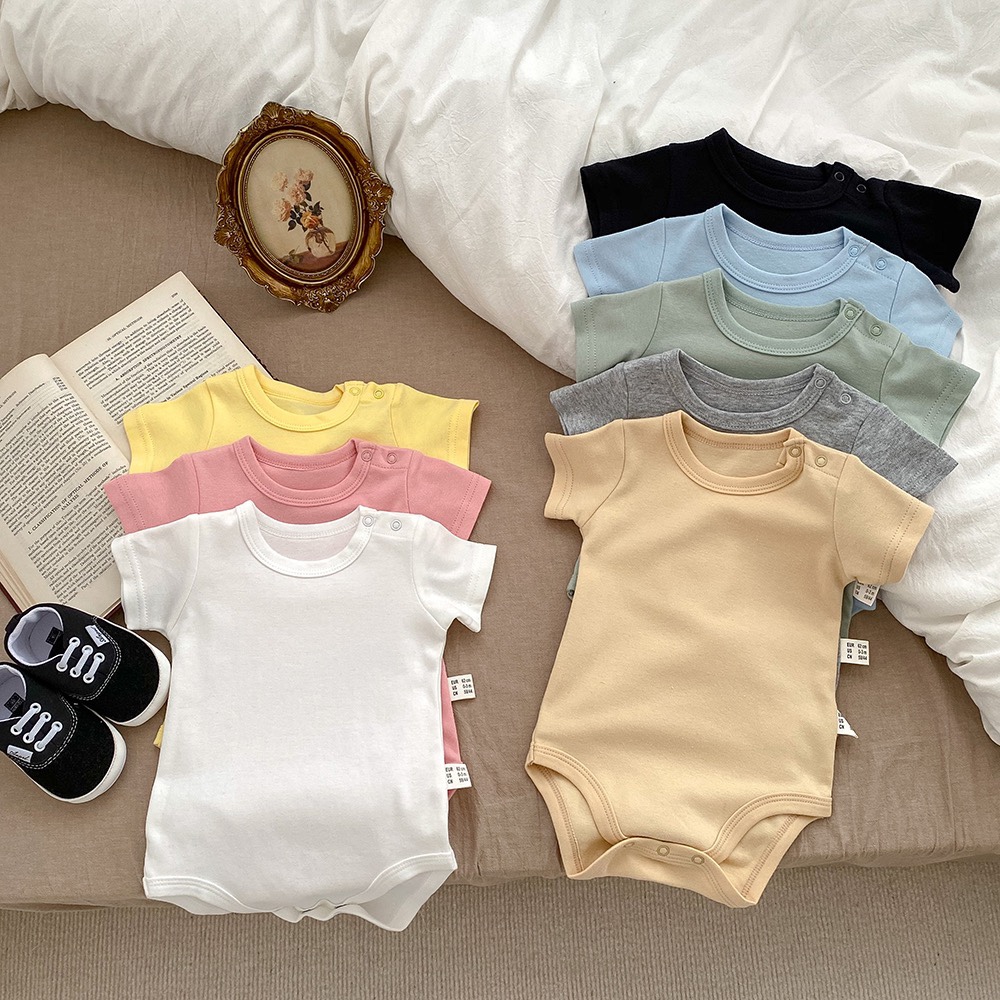ins韩版婴儿衣服夏装 男女宝宝纯色哈衣短袖包屁衣纯棉薄款连体衣