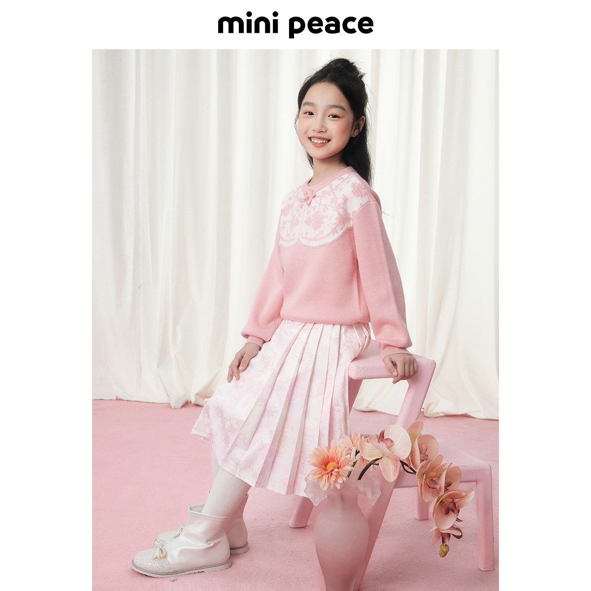 MINIPEACE太平鸟童装女童裙子春季新款儿童国风改良马面半身裙