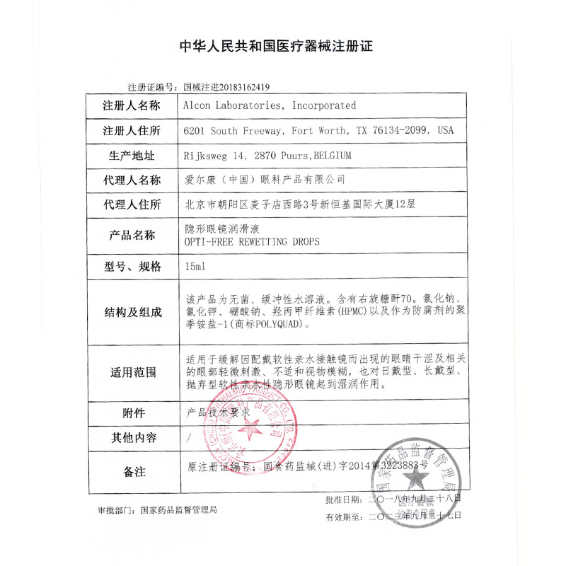 爱尔康彩色隐形近视眼镜眼药水润眼液15ml润滑保湿滴眼液官方旗舰