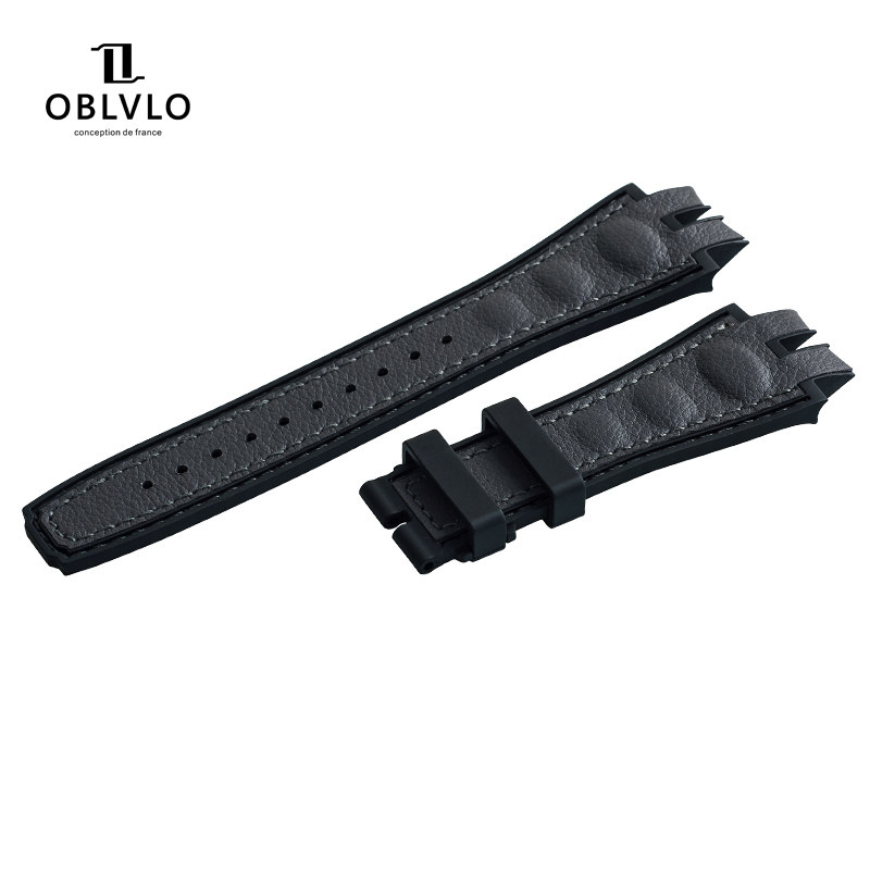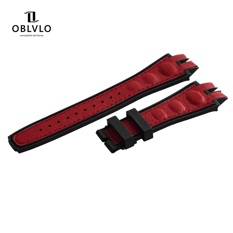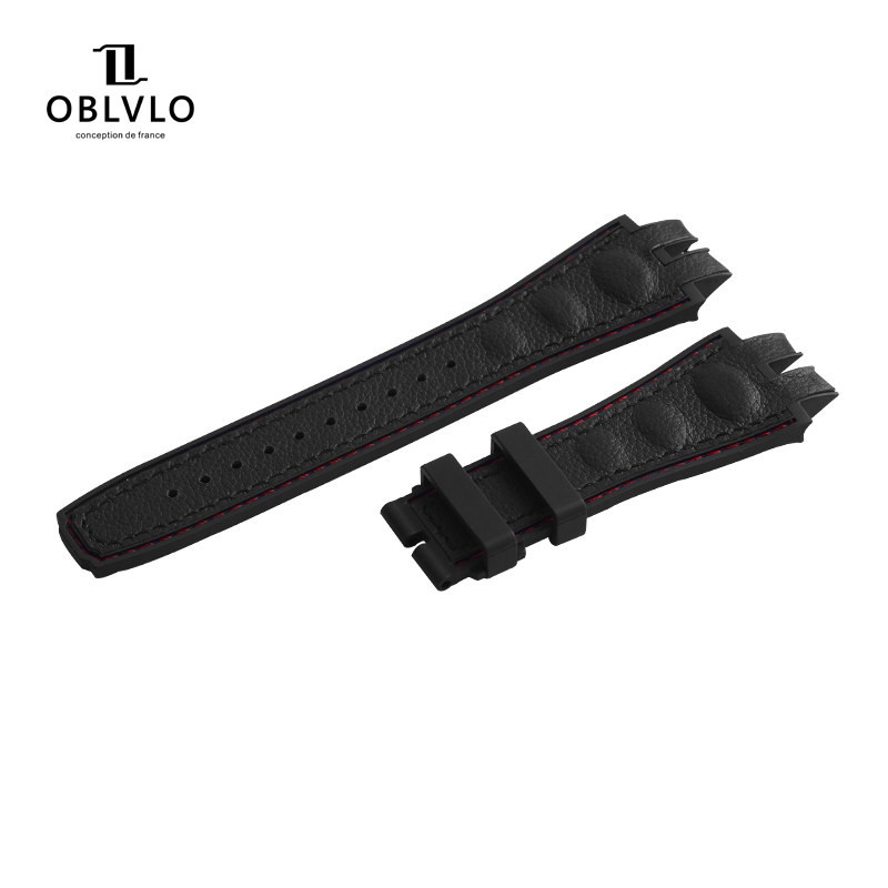 LM系列腕表适用表带头层牛皮橡胶车线材质