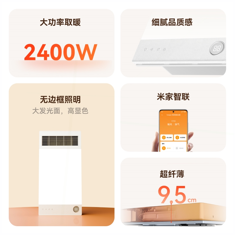 风暖排气扇照明一体暖风机浴室卫生间集成吊顶取暖灯Yeelight浴霸