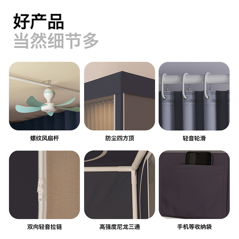 强遮光床帘蚊帐一体式大学生宿舍上下铺专用床幔寝室单人床免安装