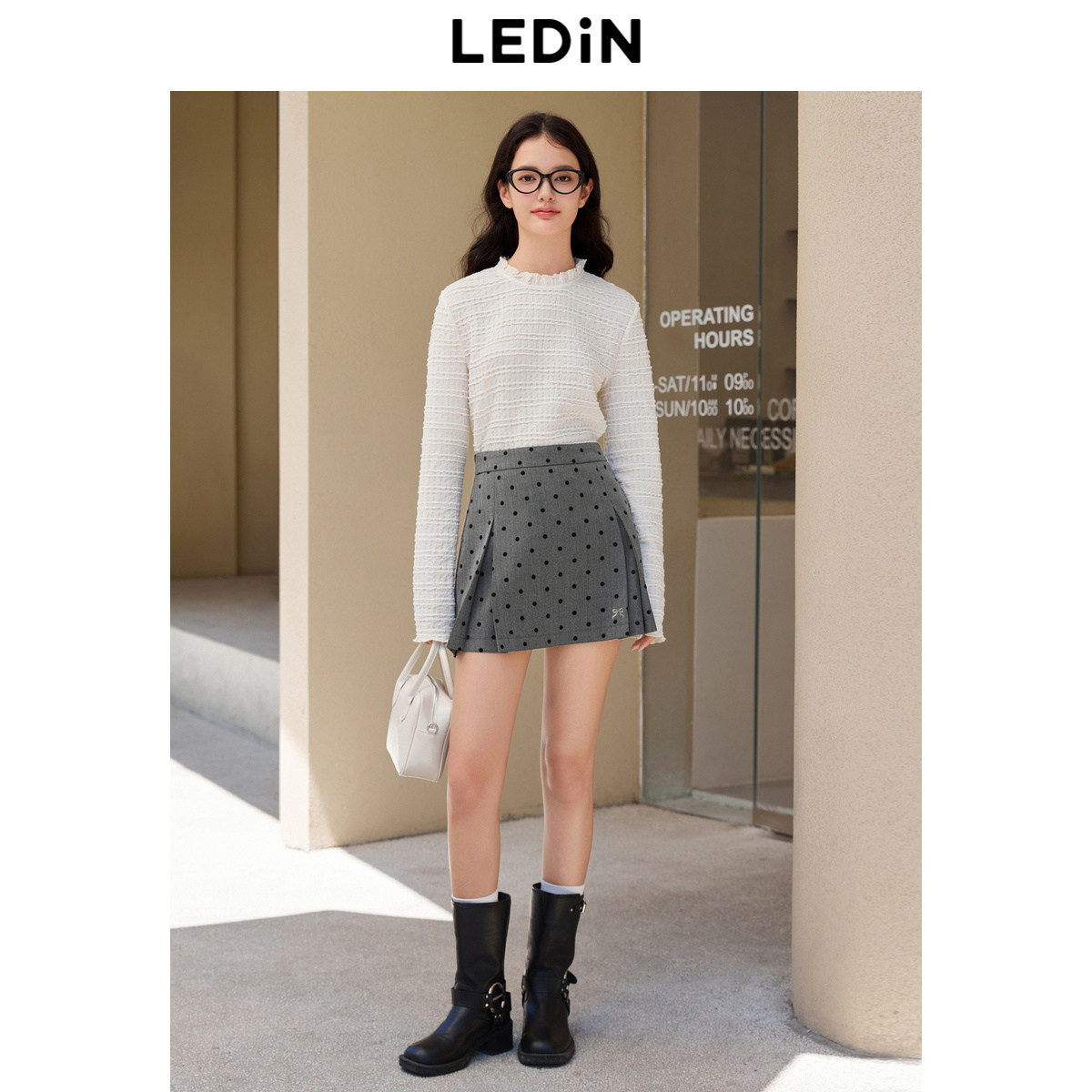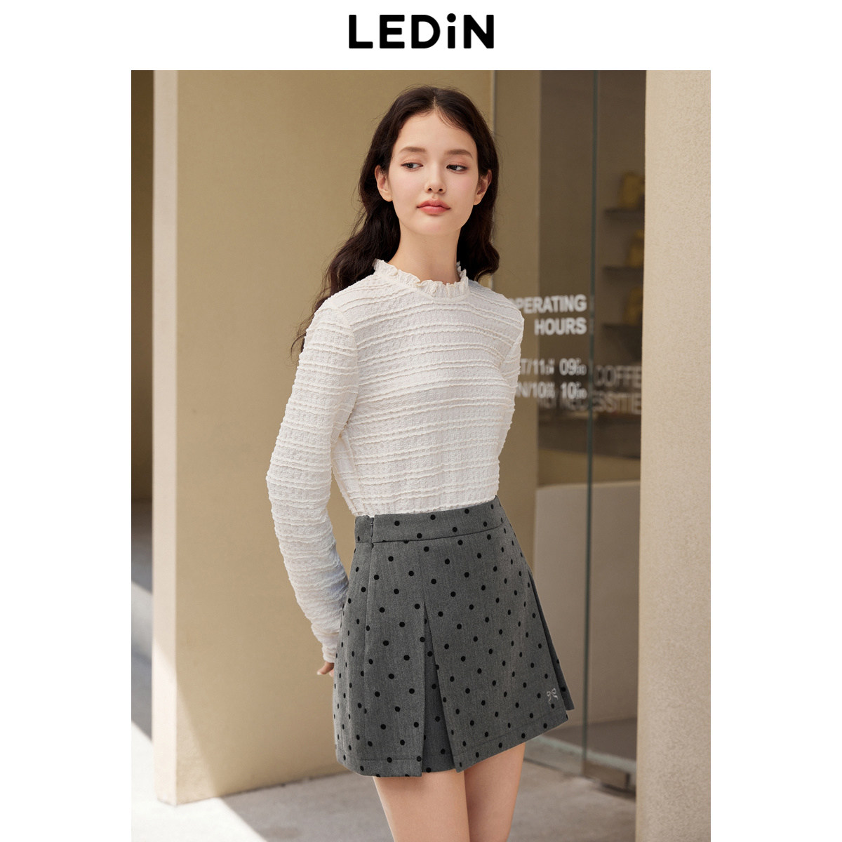 乐町立体波浪横纹蕾丝雪纺衫冬季新款韩系弹力简约蕾丝上衣
