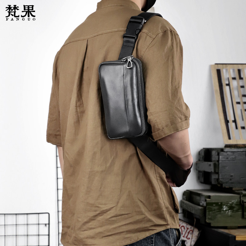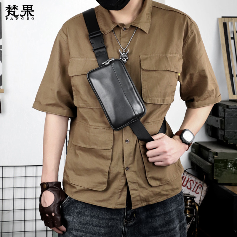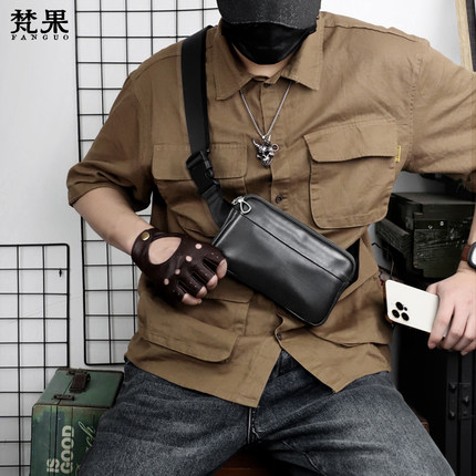 真皮胸包男士单肩包头层牛皮腰包小包软皮韩版挎包机车小背包潮牌