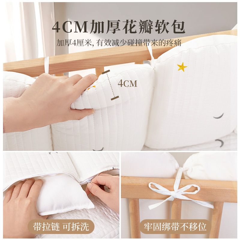 婴儿床围栏软包纯棉透气防撞条宝宝儿童拼接床围挡布加高护边护栏