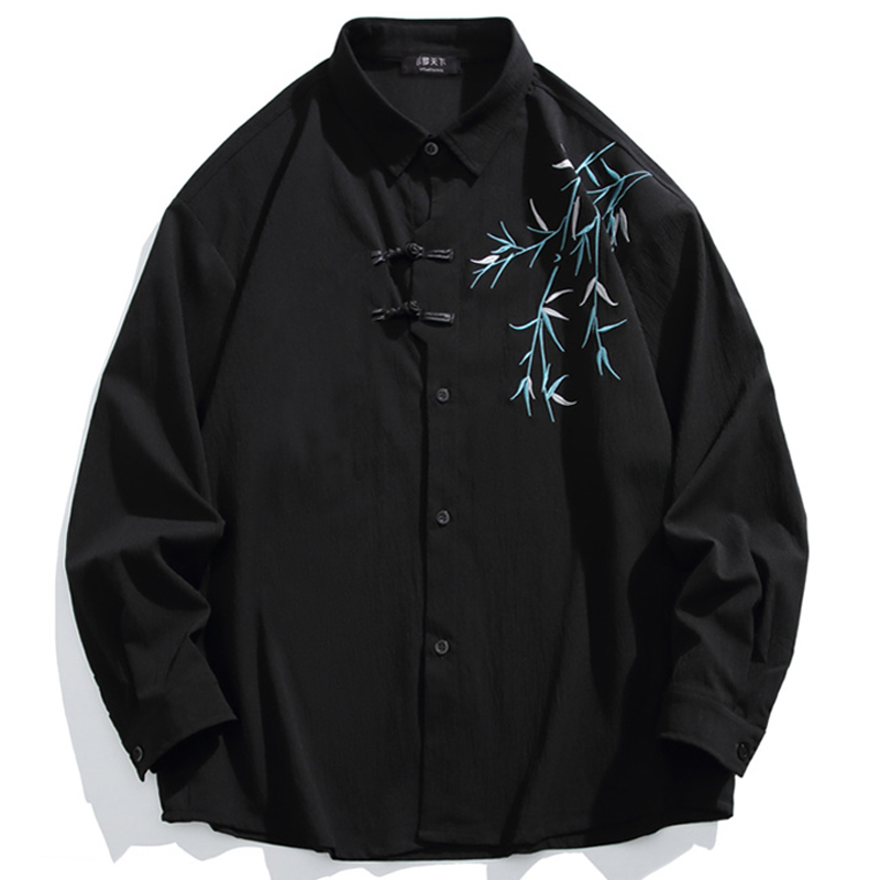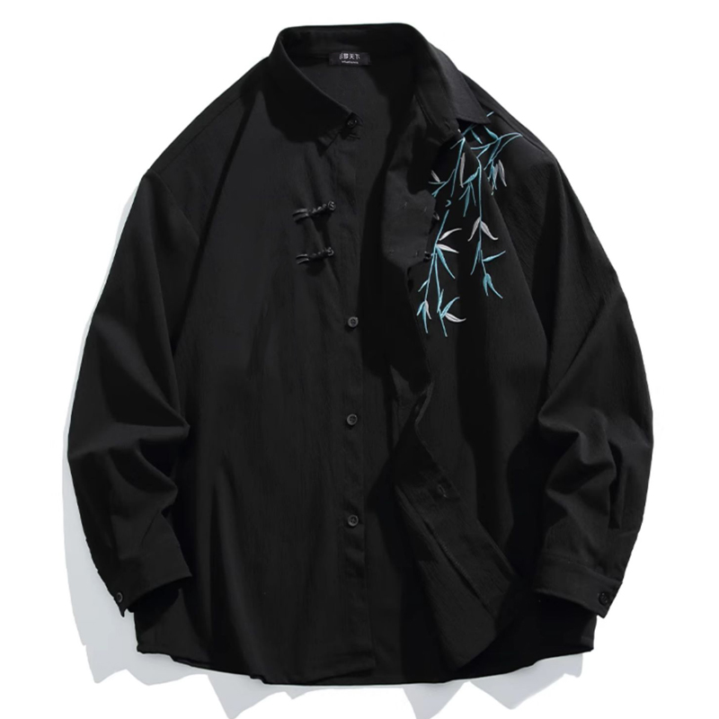 肥佬加肥加大号胖哥超特大码国风350斤宽松长袖刺绣衬衫衬衣男秋