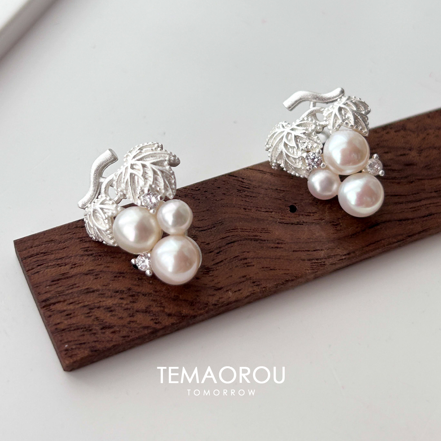 S925纯银可爱小葡萄仿珍珠耳钉女2025新款爆款耳环高级感耳饰气质