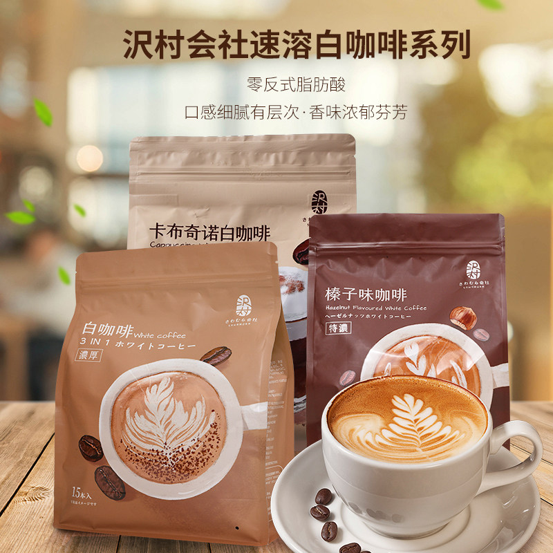 【自营】马来西亚进口沢村会社三合一榛子味速溶白咖啡冻干冲饮品
