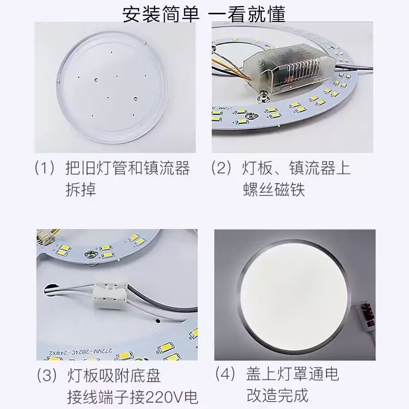 led吸顶灯灯芯灯板吊扇灯圆形替换灯片磁吸灯盘风扇灯三色光源