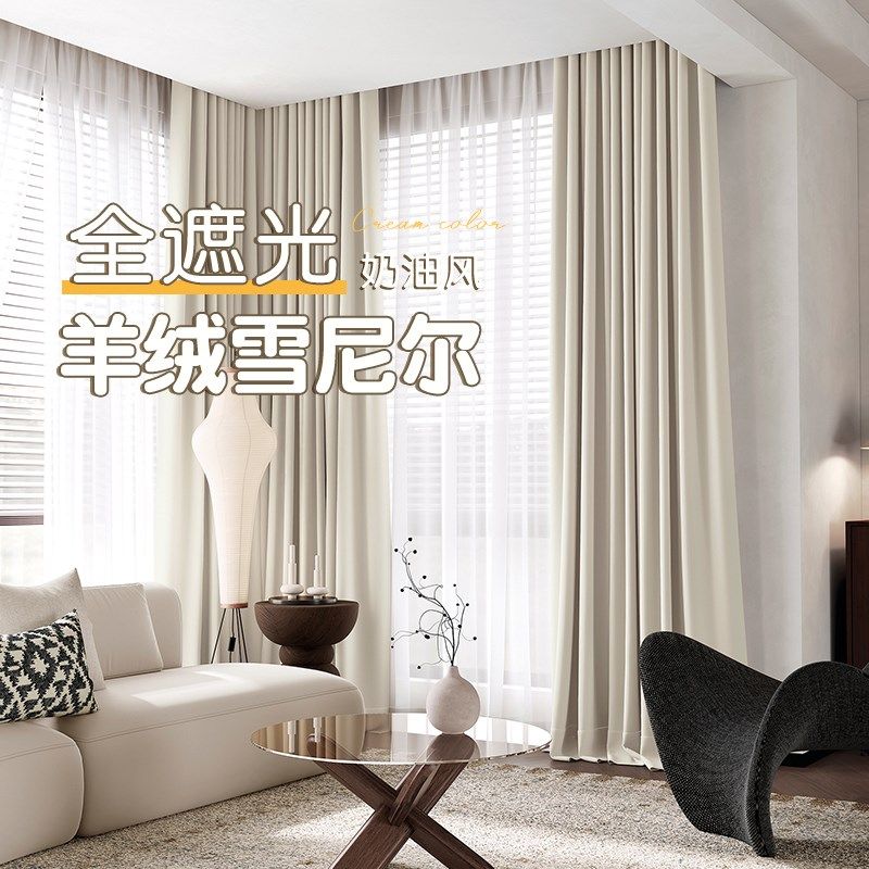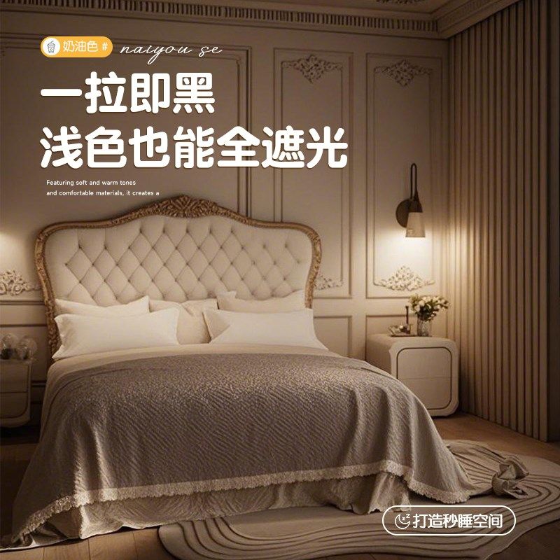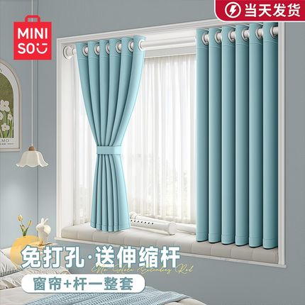 卧室全遮光窗帘短飘窗免打孔安装伸缩杆一整套遮光遮阳帘布小窗户