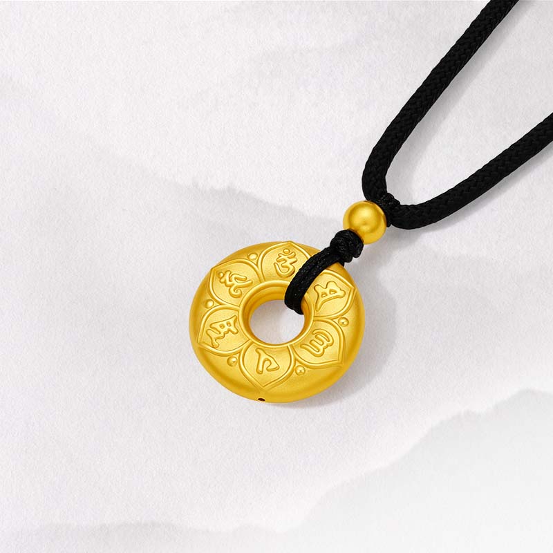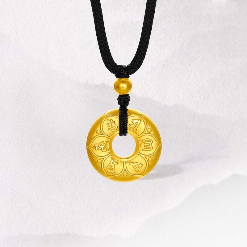 周六福黄金吊坠男女六字箴言父亲节礼物5D硬金颈饰定价官方旗舰店