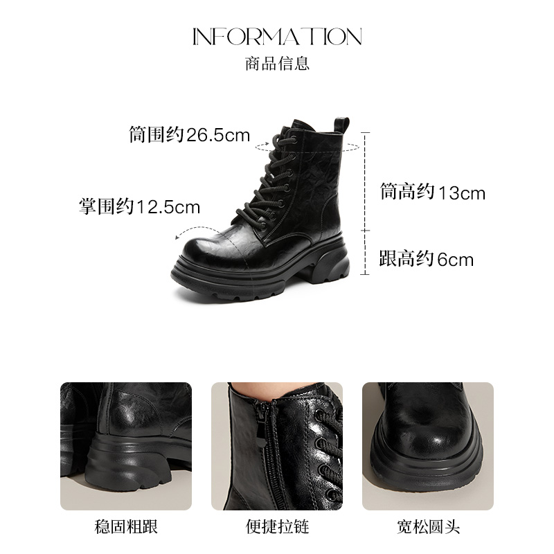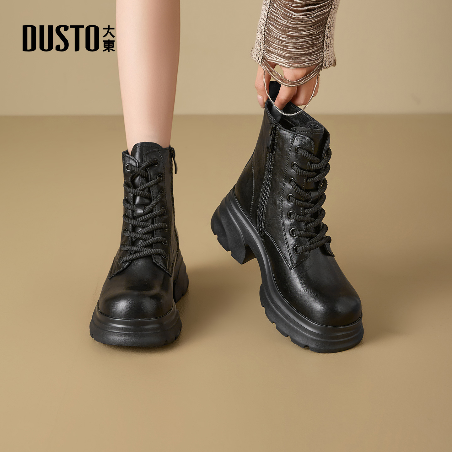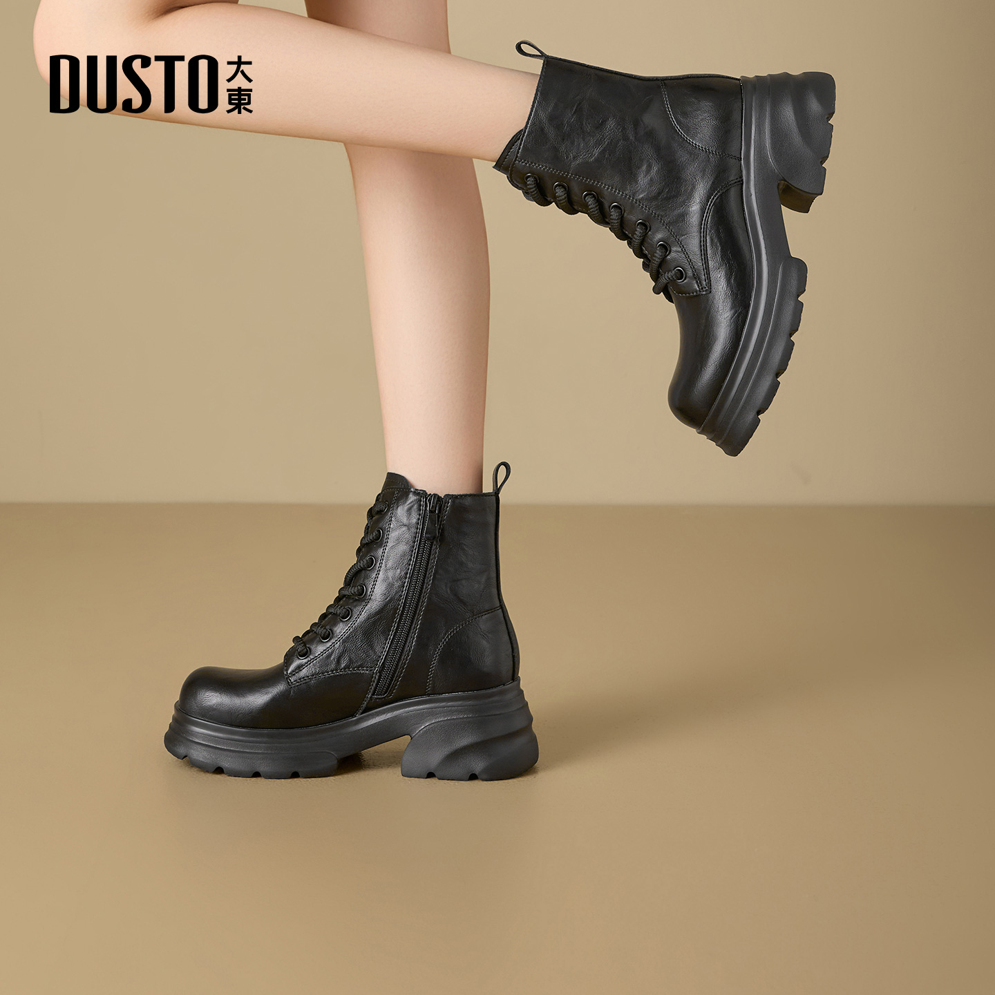 大东女靴马丁靴2025冬季新款潮酷粗跟厚底短靴圆头侧拉链工装女鞋