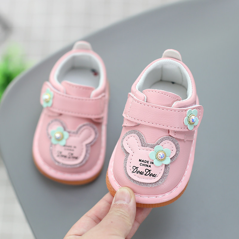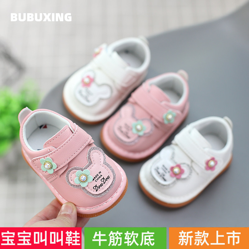 春秋叫叫鞋女宝宝鞋子男童鞋公主防滑软底婴儿学步鞋0-1-2岁3会响