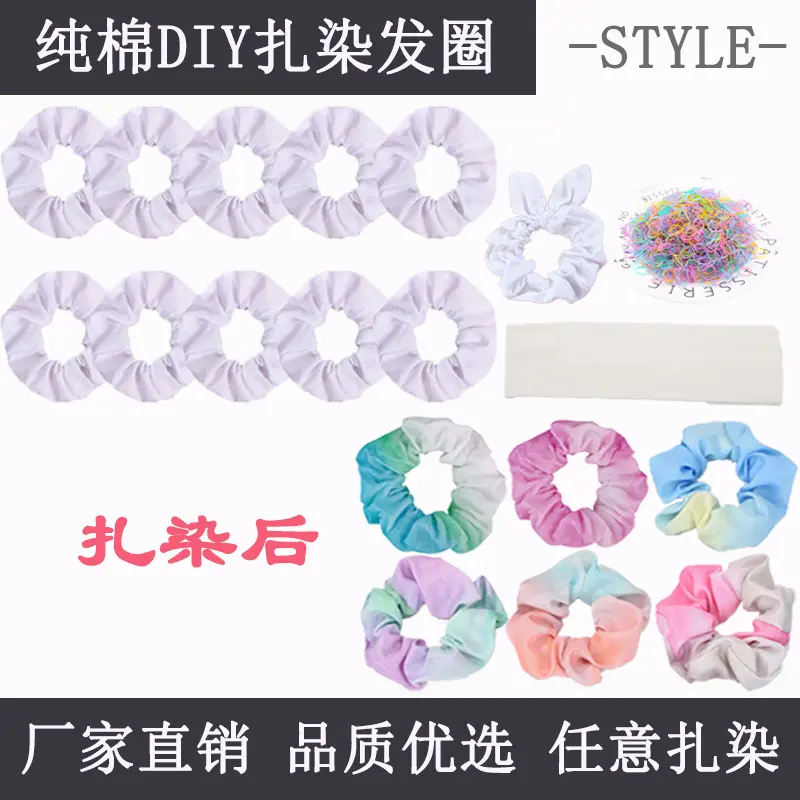 元旦节团建活动材料手工DIY扎染发圈纯棉白色大肠发圈漂漆染发饰