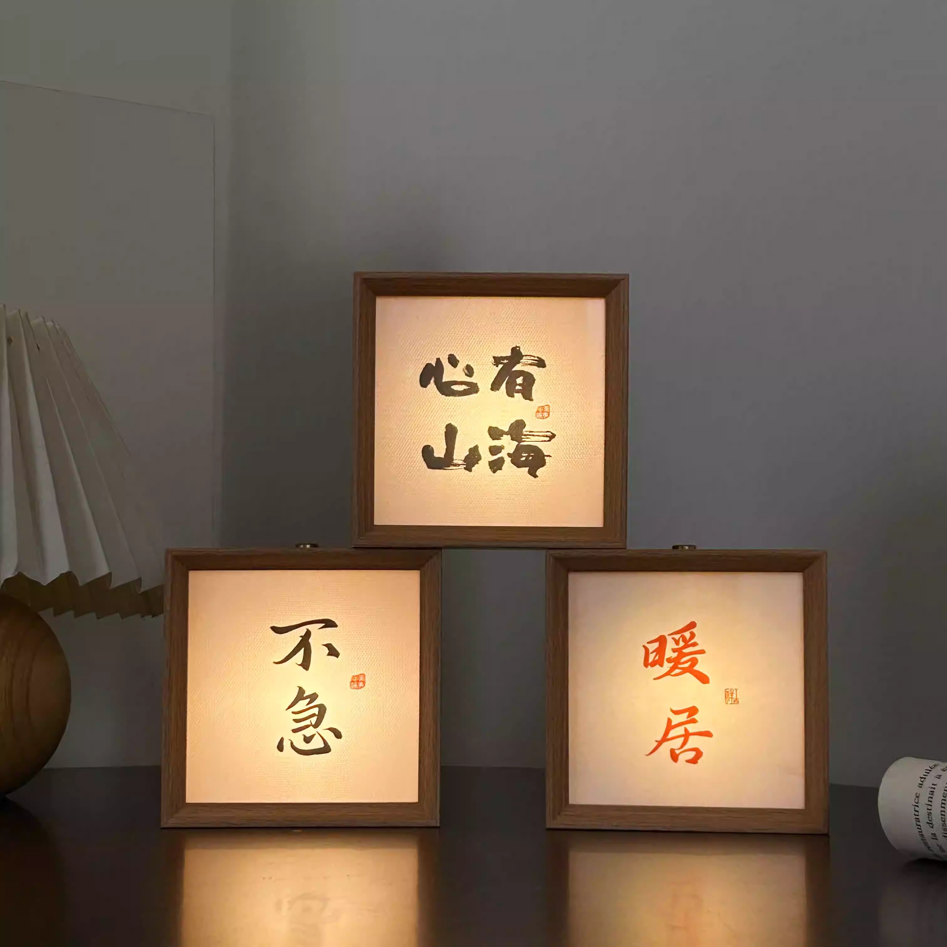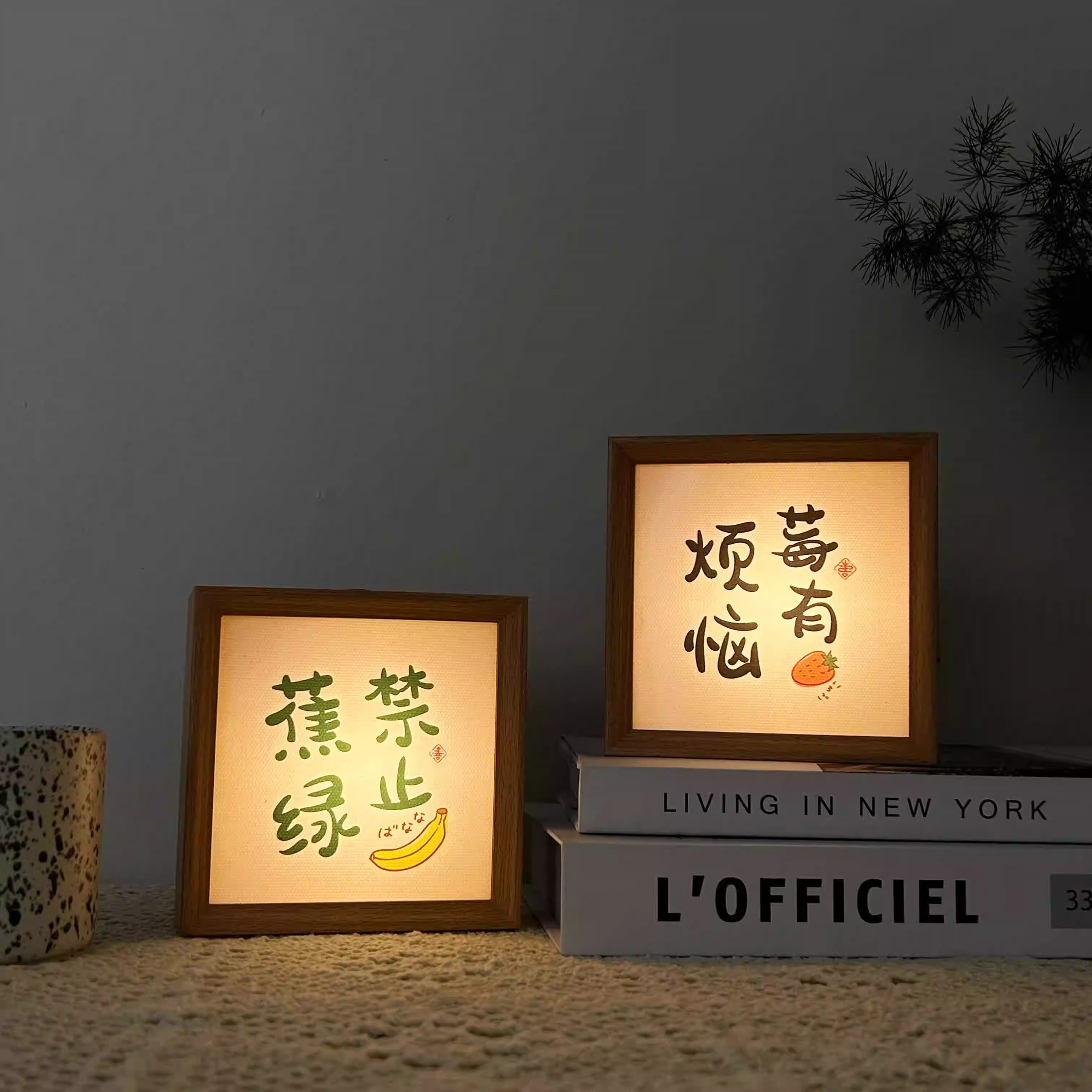 书法小夜灯祝福语可爱文字相框摆台卧室创意摆件氛围灯DIY礼物灯