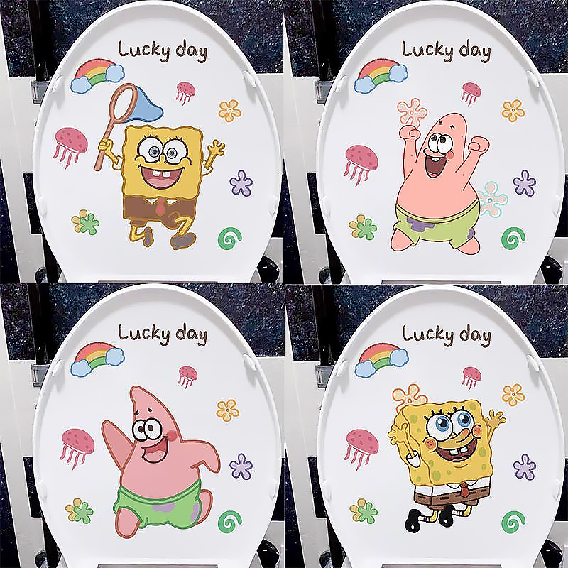 卡通马桶盖海绵宝宝贴纸装饰个性创意卡通卫生间马桶贴防水墙贴纸