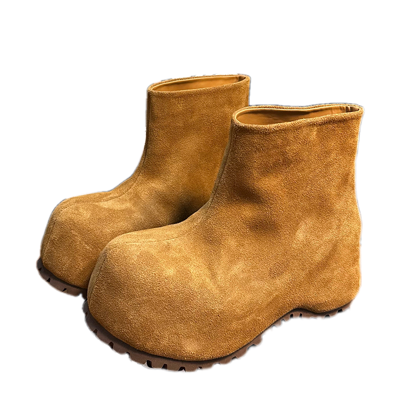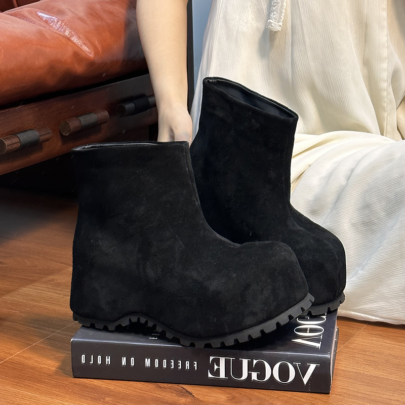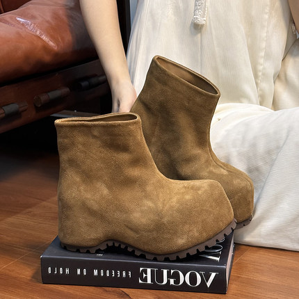 磨砂牛皮大头松糕厚底马丁靴女2025新款复古真皮小个子增高短靴子