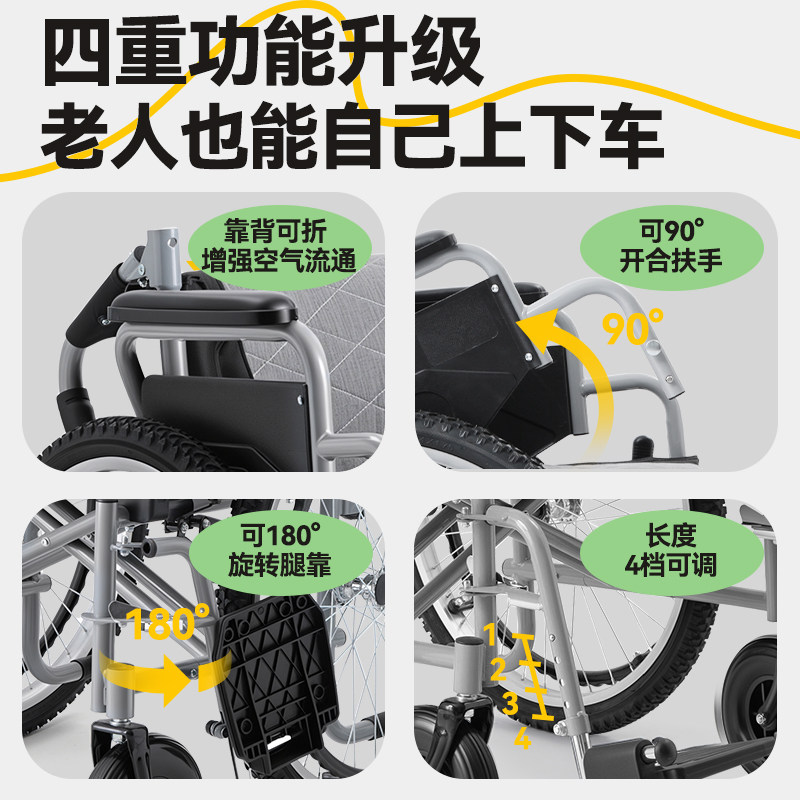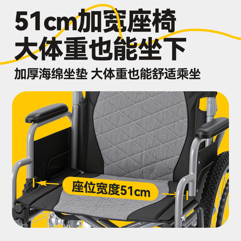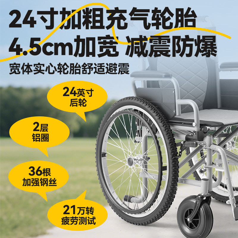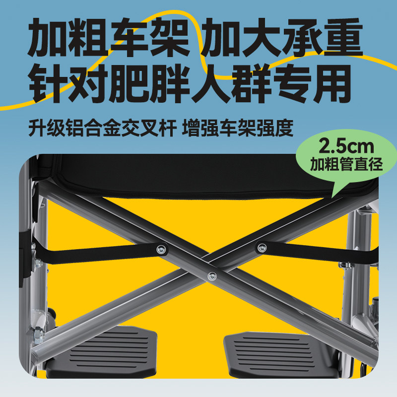 可孚轮椅承重300斤大体重肥胖老人专用手推车多功能减震轻便折叠