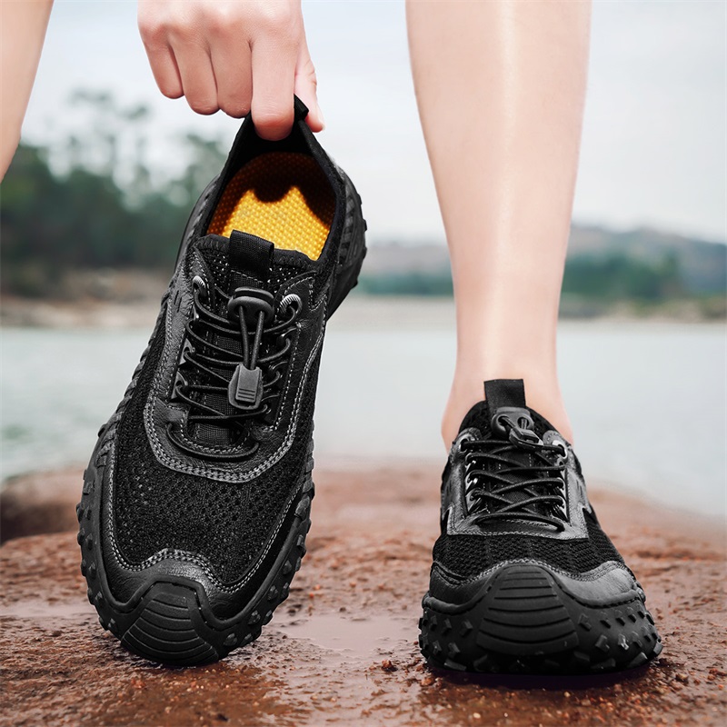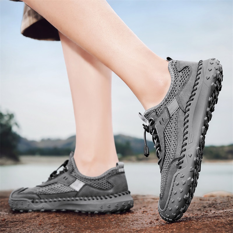 外贸跨境网鞋薄款男鞋镂空夏季透气一脚蹬懒人真皮户外网面登山鞋