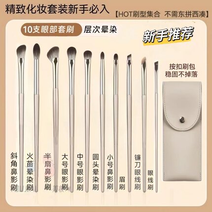 新鎏金眼部13支套刷眼影鼻影晕染遮瑕刷初学者软毛化妆刷携带刷包