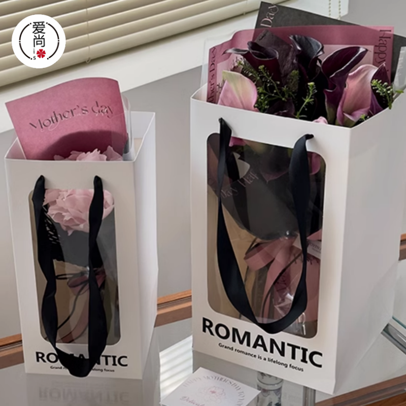 夏日甜筒节日鲜花冰淇淋手提袋简约鲜花花束袋花束礼品袋包装资材