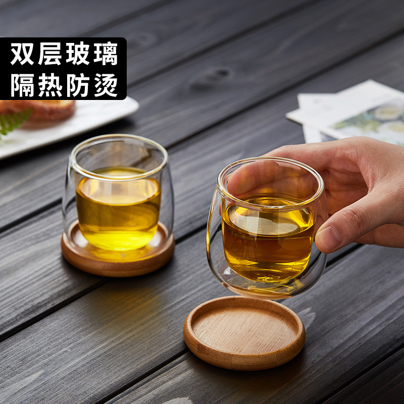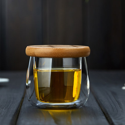 双层玻璃杯品茗杯小主人杯耐高温新款办公带盖个人家用功夫泡茶杯