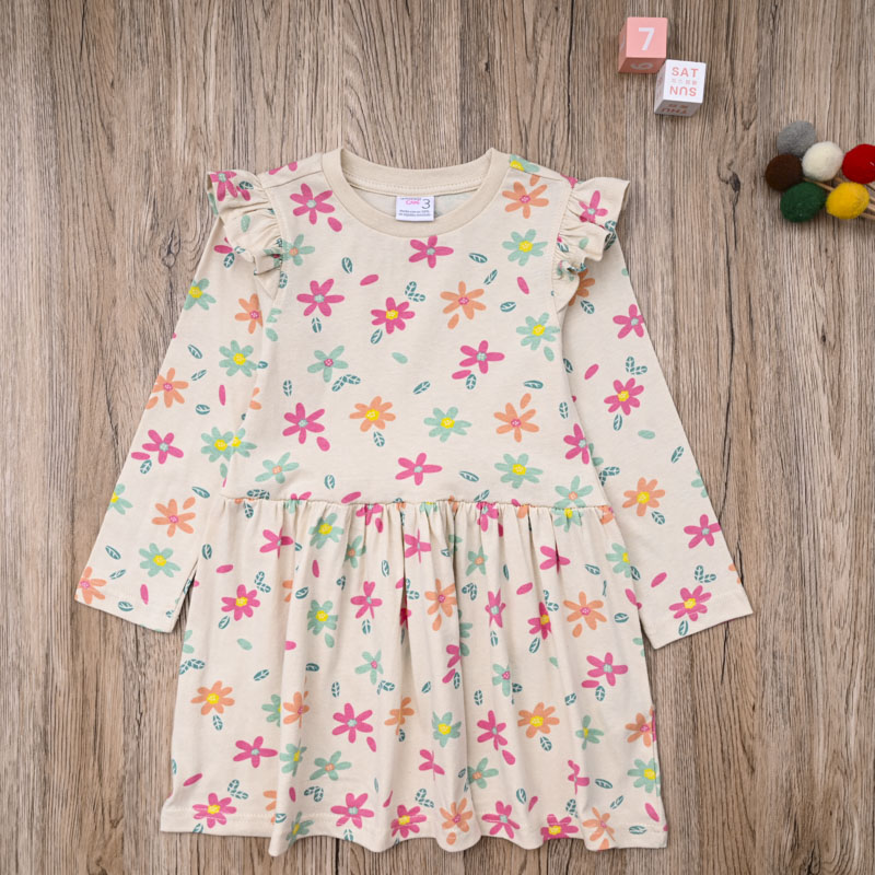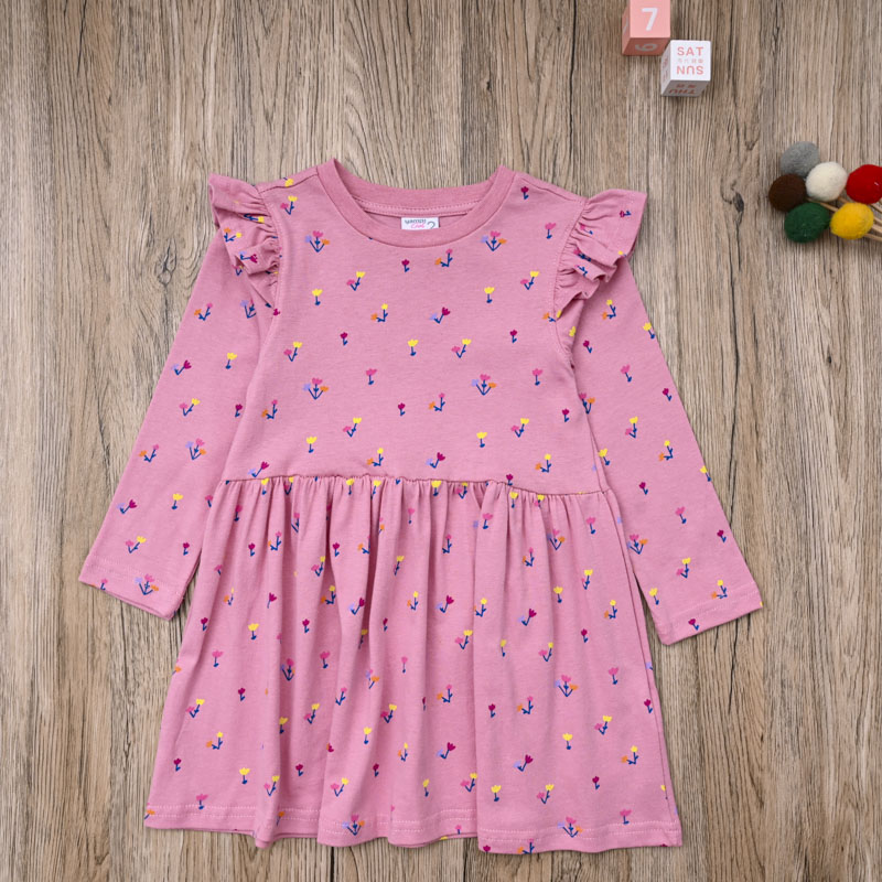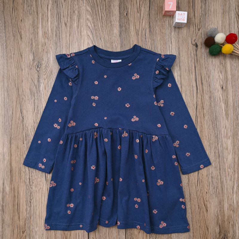 外贸欧美女宝春秋纯棉长袖连衣裙子女童可爱休闲满印圆领公主裙